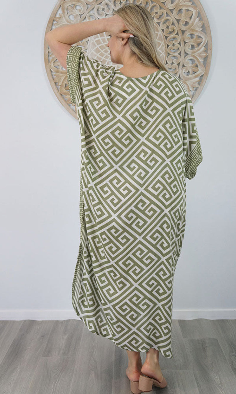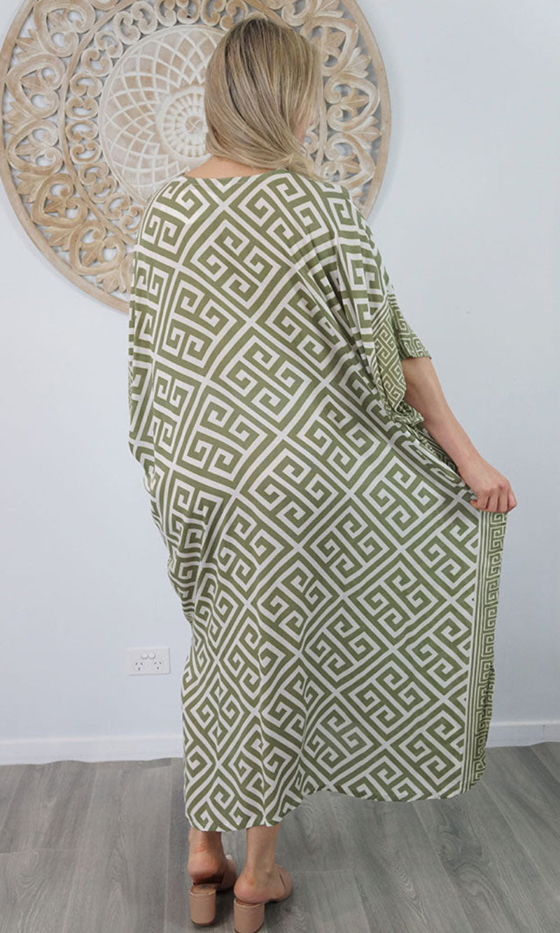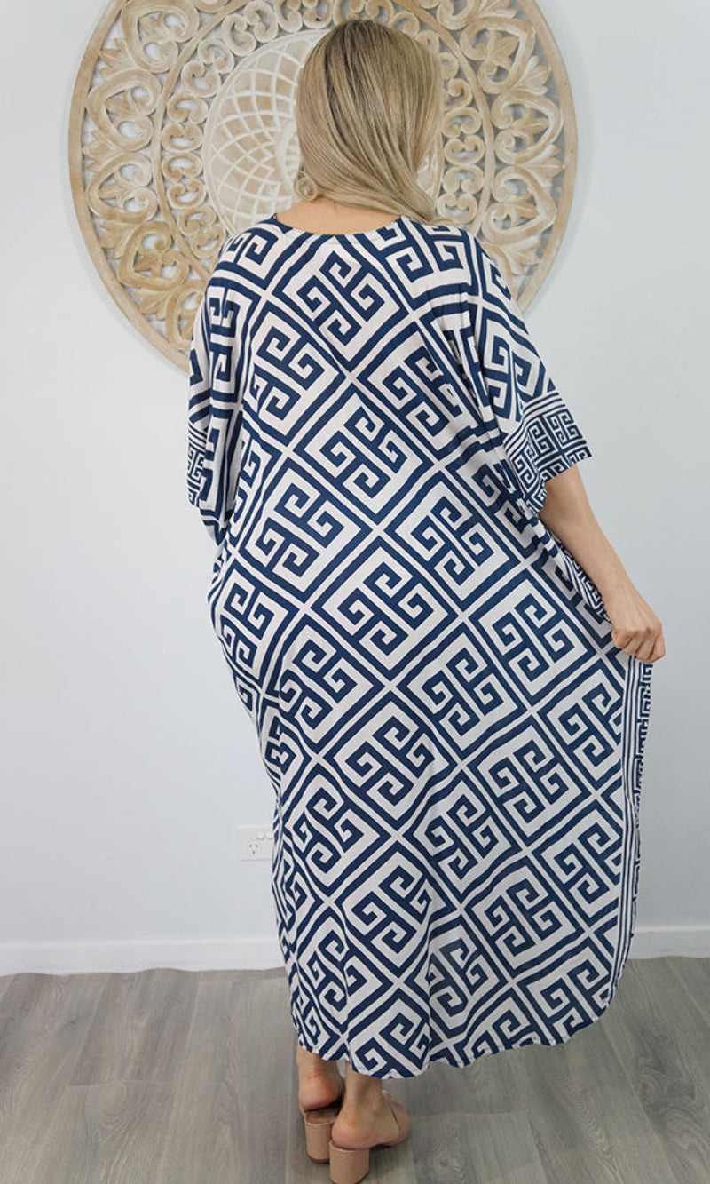 Our kaftans range from rich solid colours to funky patterns. A simple V-neck in the front, side splits on the bottom and a free size from 10-26, this product fits everyone (seriously, these fit everyone).