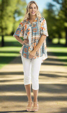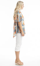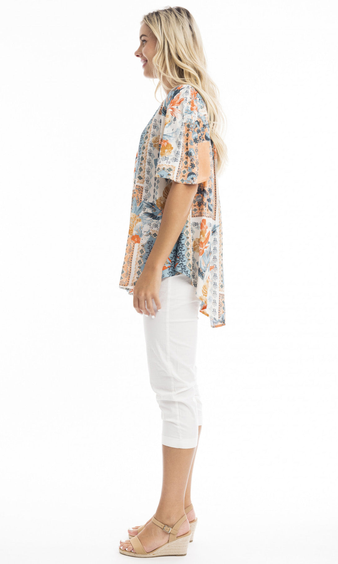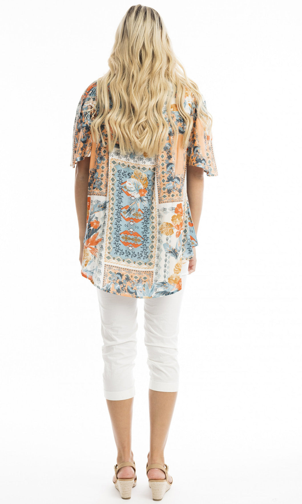 Elevate your style with our fun Kauai oversized top. Featuring a playful and colourful print, this top is designed with a relaxed fit and a stylish v-neckline. The short sleeves and high-low hem add style and coverage, making it perfect for pairing with your favourite trousers or jeans. This is the perfect piece to elevate your casual wardrobe.