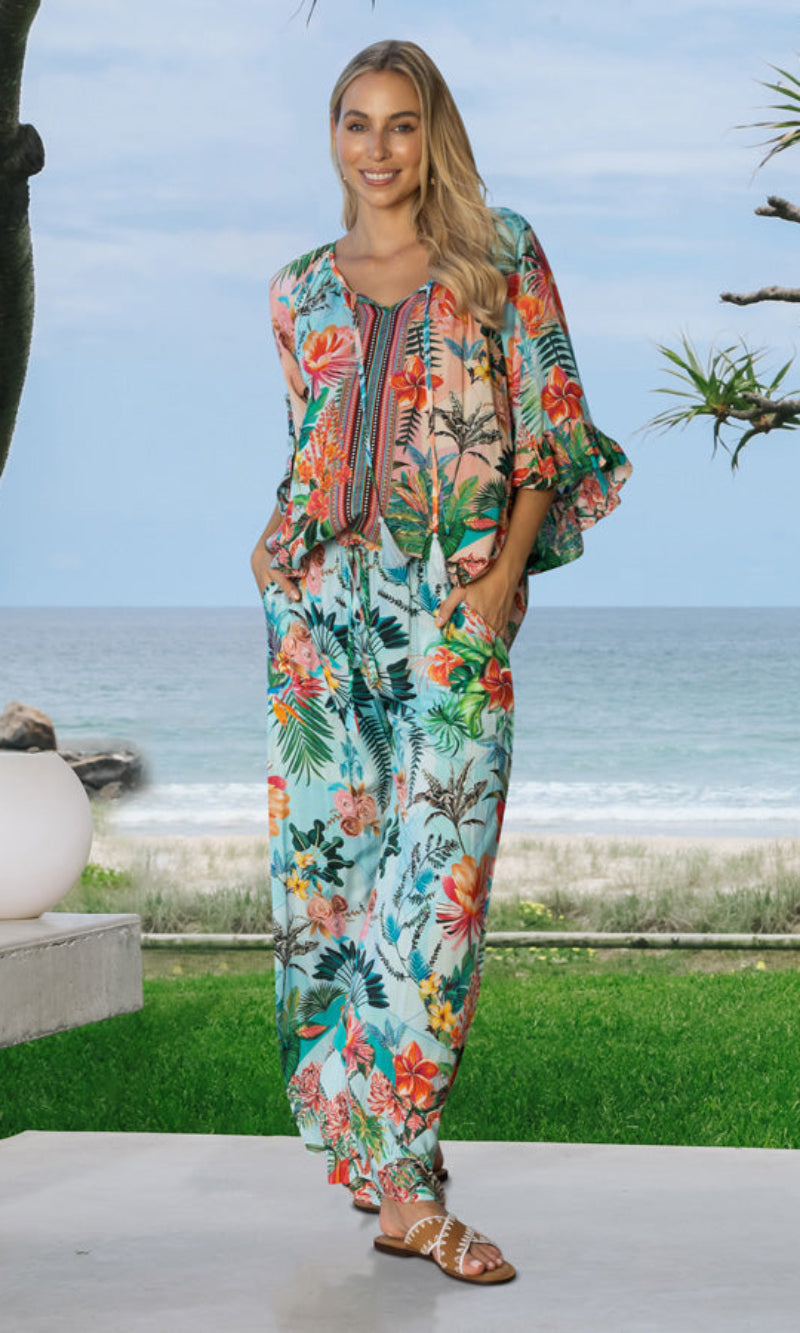 Our new tropics inspired floral print is not to be missed this season. Featuring an elasticised waistband in a loose fitting silhouette, this piece is the perfect change up from your favourite printed dress.