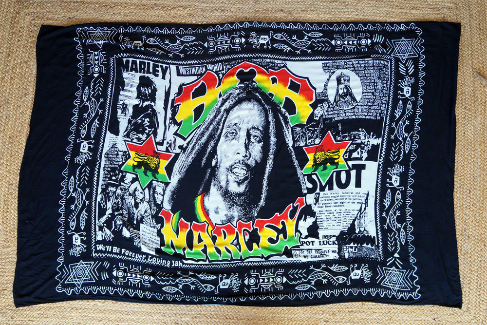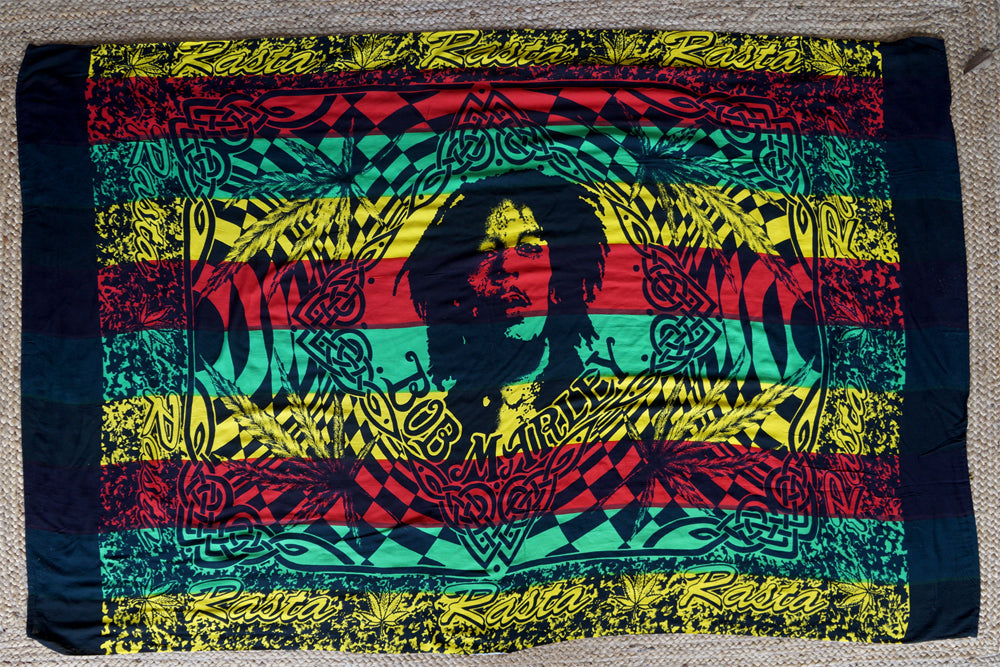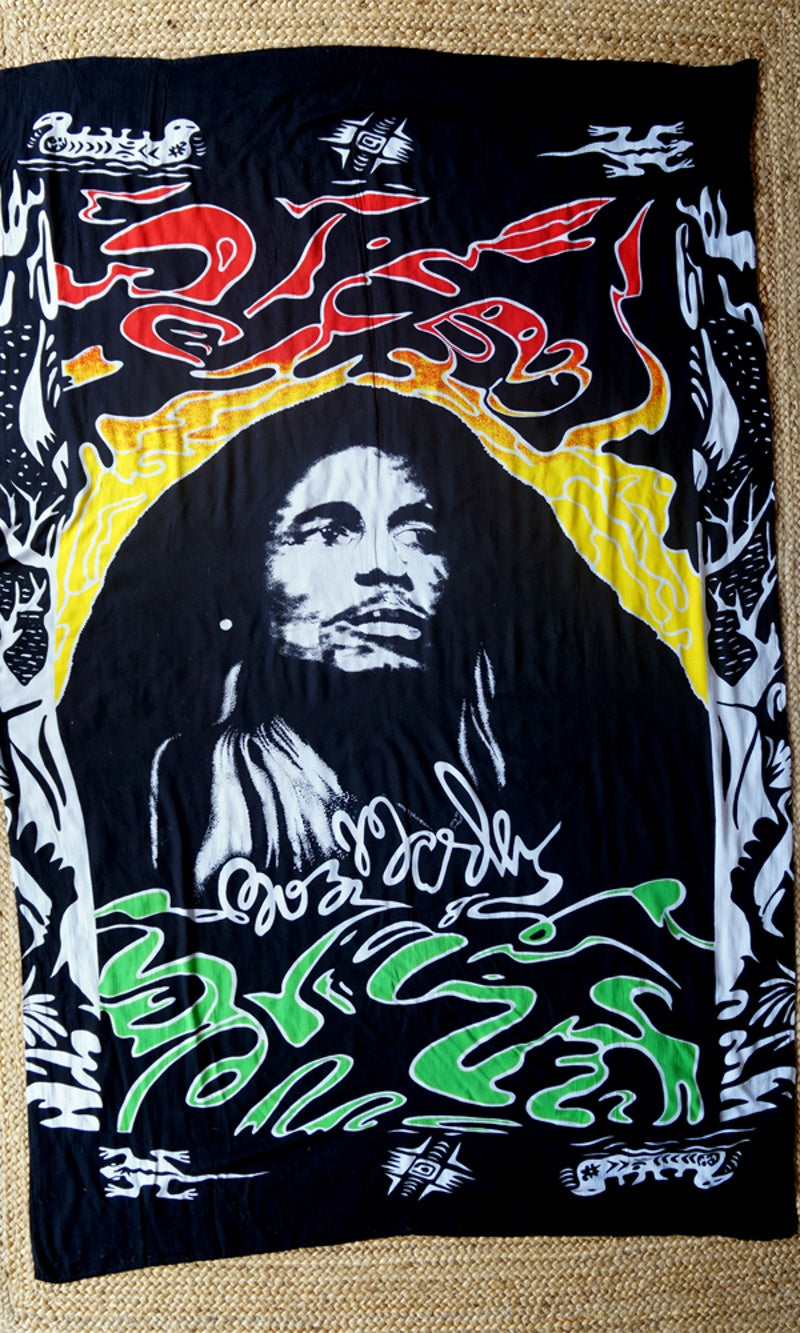 These "Bob Marley" printed sarongs are a great cover up for a day at the beach, pool, lake or wherever else your heart desires. Can be also used as a wall hanging or mural. Sarong measures approximately 1.8M x 1.15M on hemmed lightweight rayon.