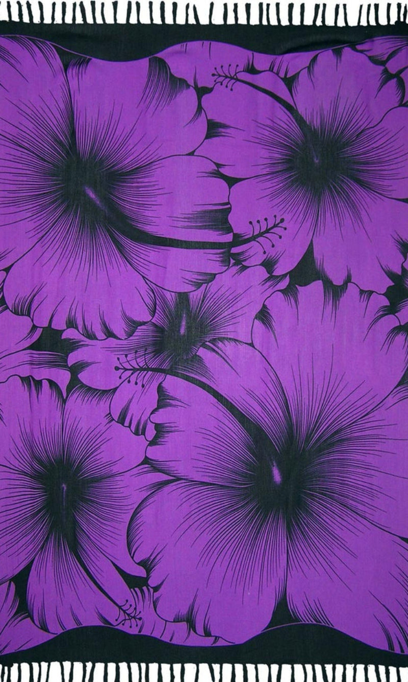These "Big Hibiscus" floral printed sarongs are a great cover up for a day at the beach, pool, lake or wherever else your heart desires. Sarong measures approximately 1.8M x 1.15M on fringed lightweight rayon.