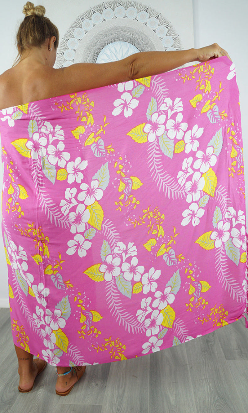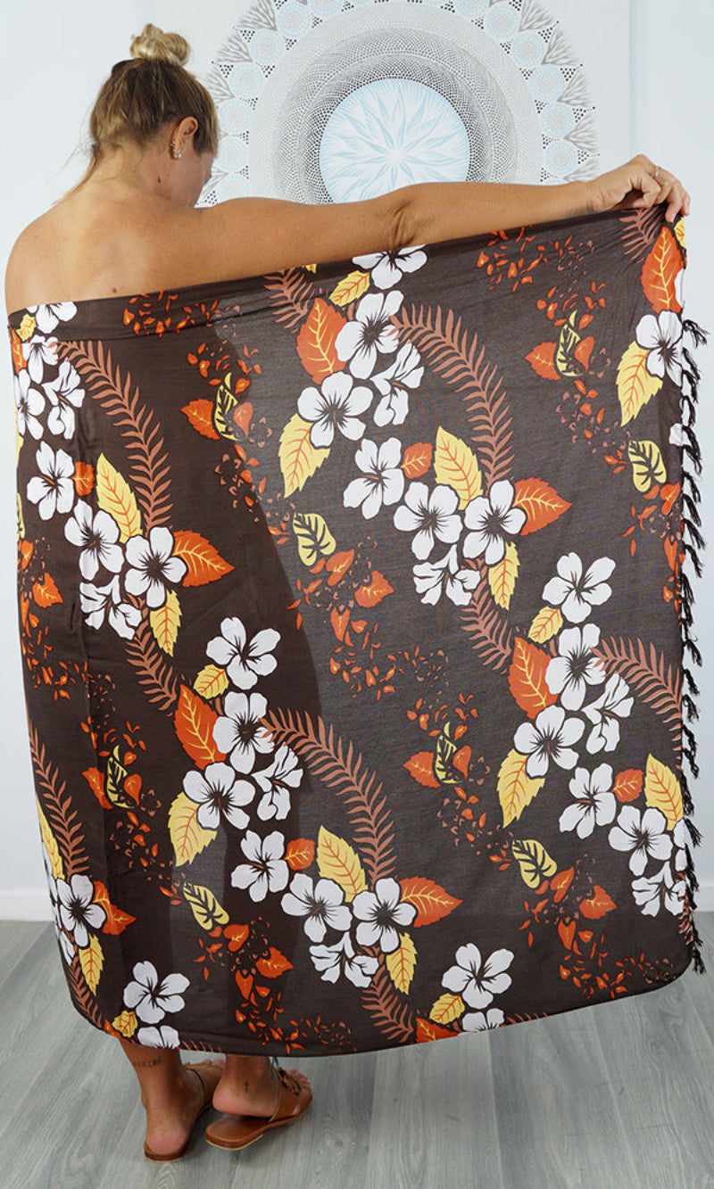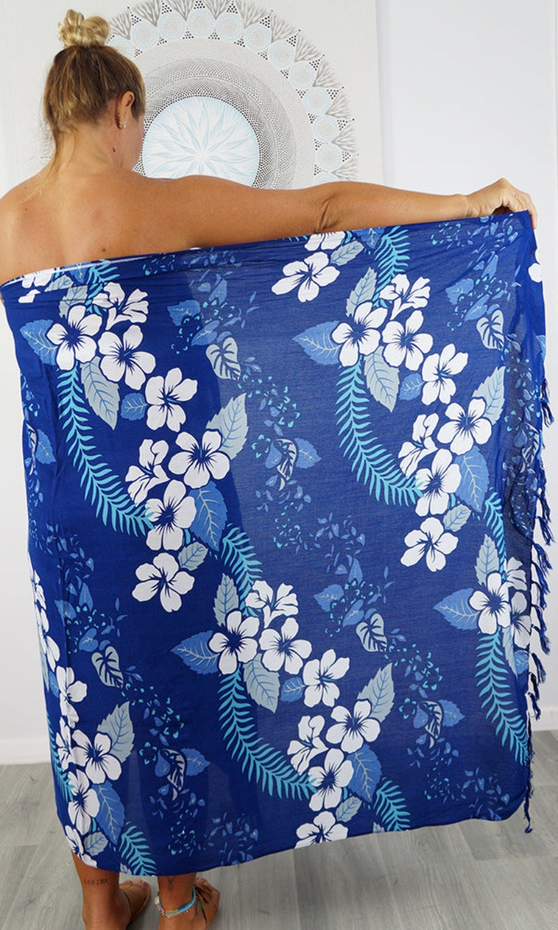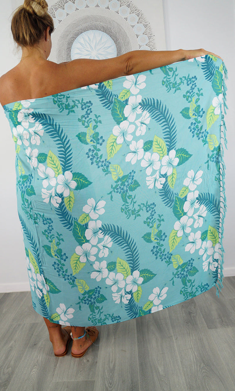 These "North Shore" printed sarongs are a great cover up for a day at the beach, pool, lake or wherever else your heart desires. Sarong measures approximately 1.8M x 1.15M on fringed lightweight rayon.