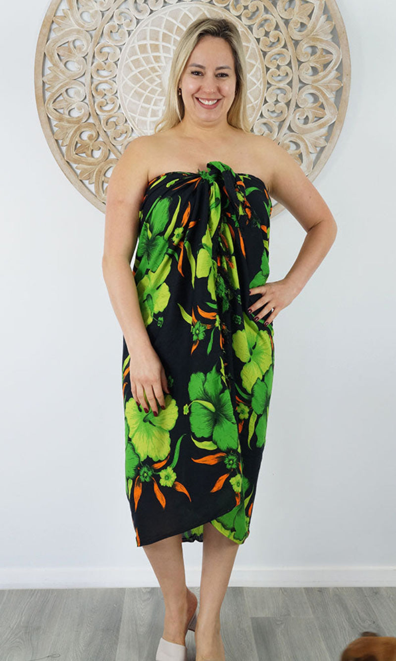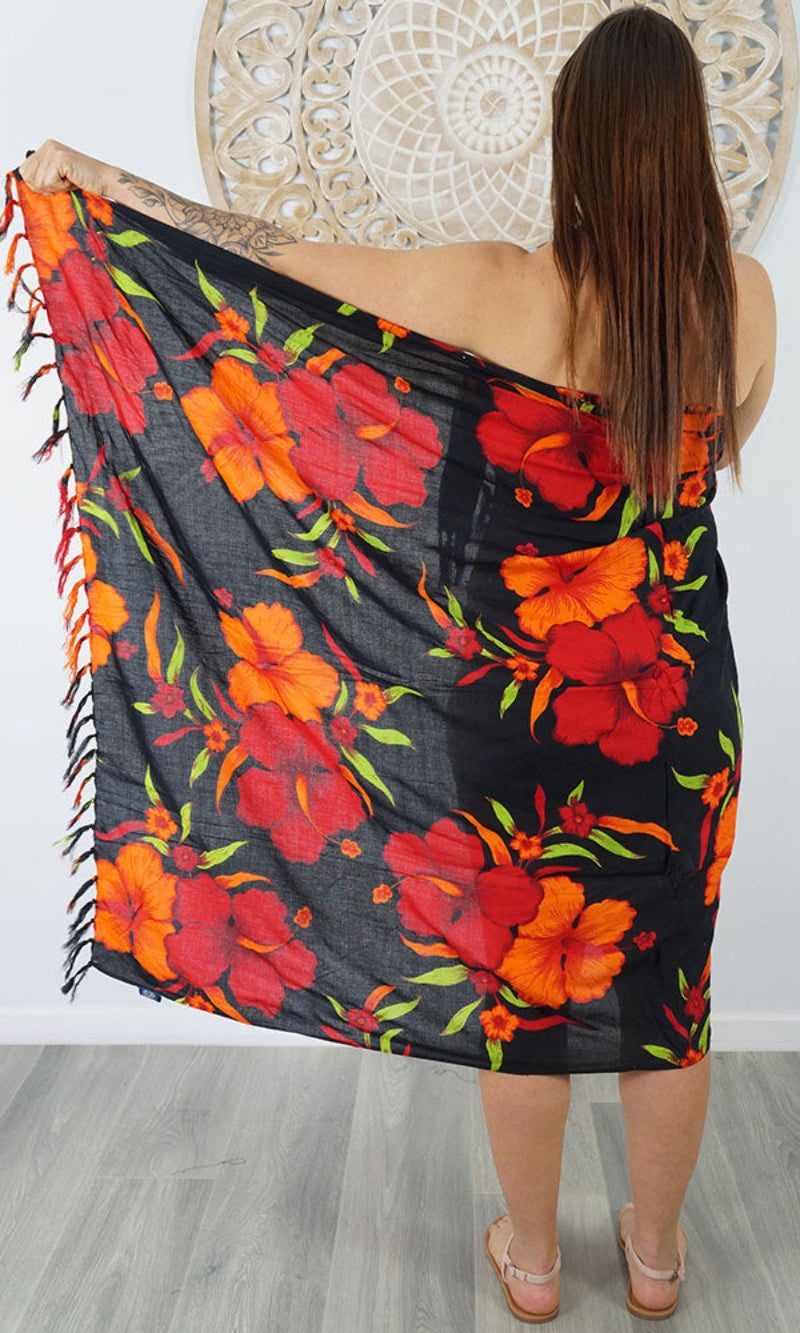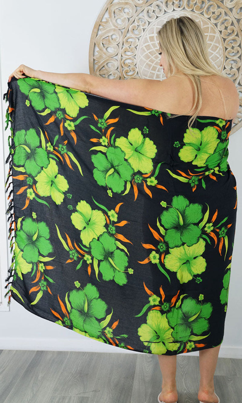 These Floral inspired "Nauru" printed sarongs are a great cover up for a day at the beach, pool, lake or wherever else your heart desires. Sarong measures approximately 1.8M x 1.15M on fringed lightweight rayon.