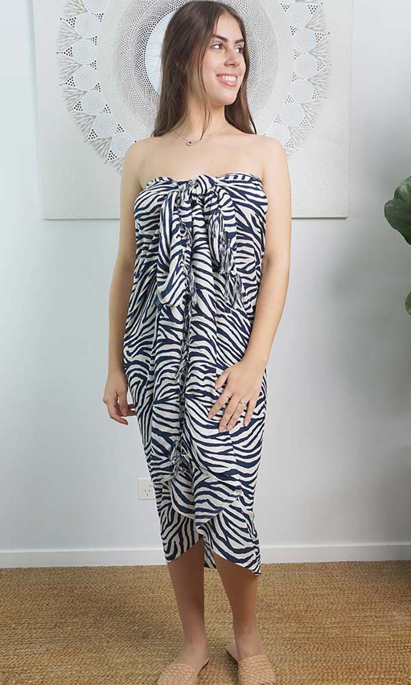 These "Madagascar" Animal style printed sarongs are a great cover up for a day at the beach, pool, lake or wherever else your heart desires. Sarong measures approximately 2.2M x 1.15M on fringed lightweight rayon.