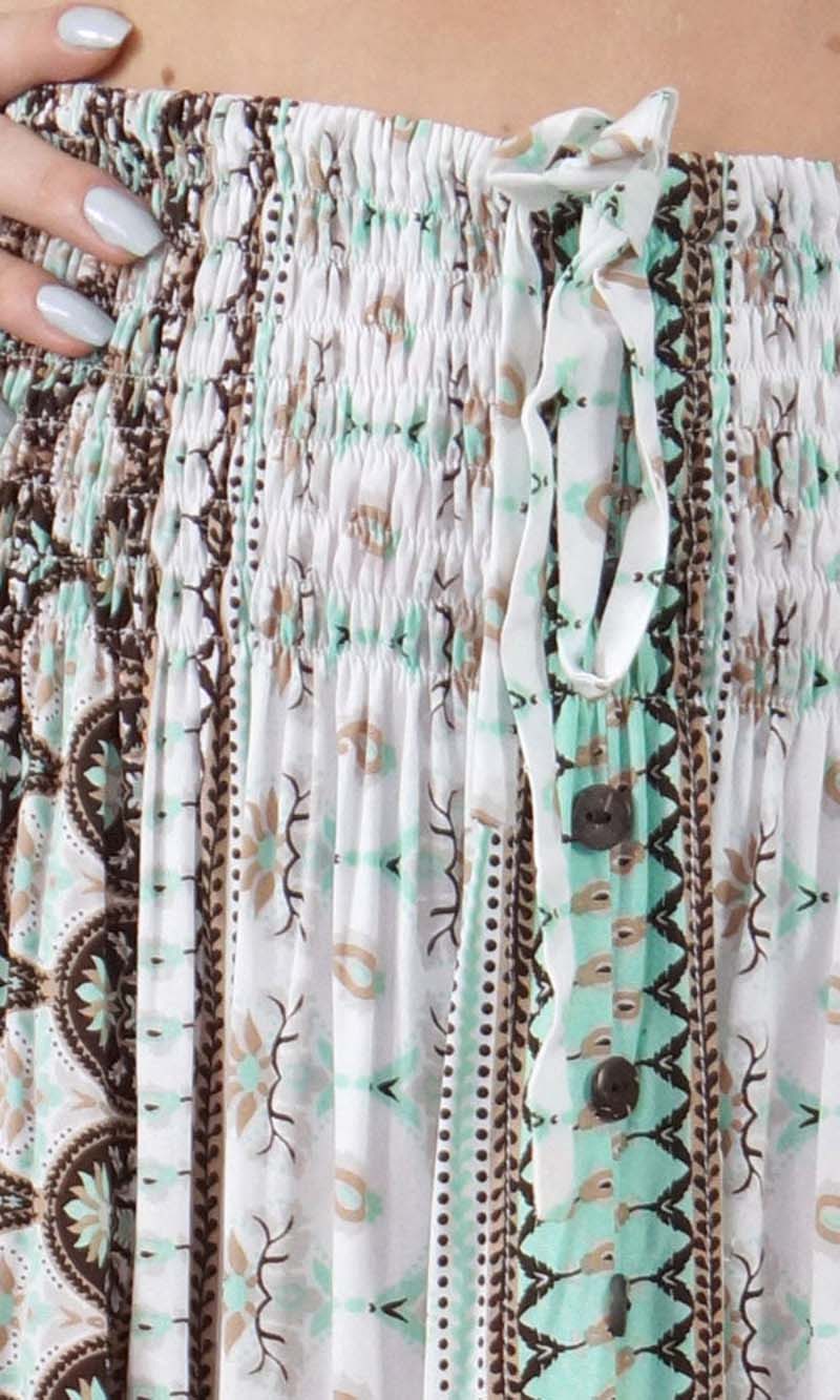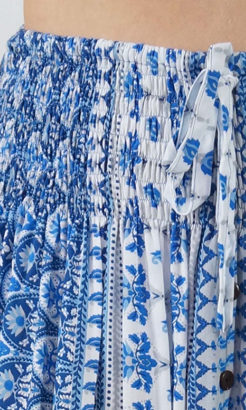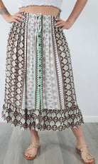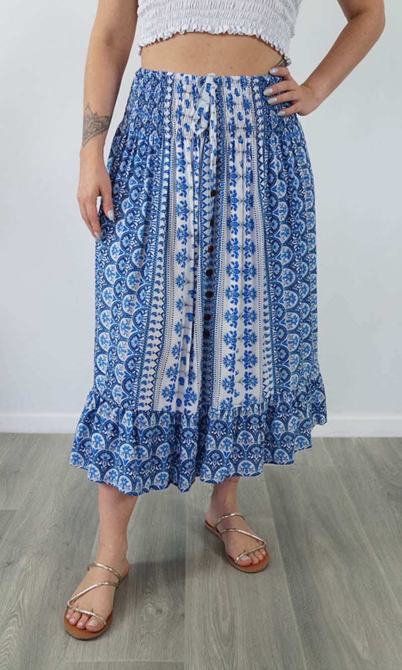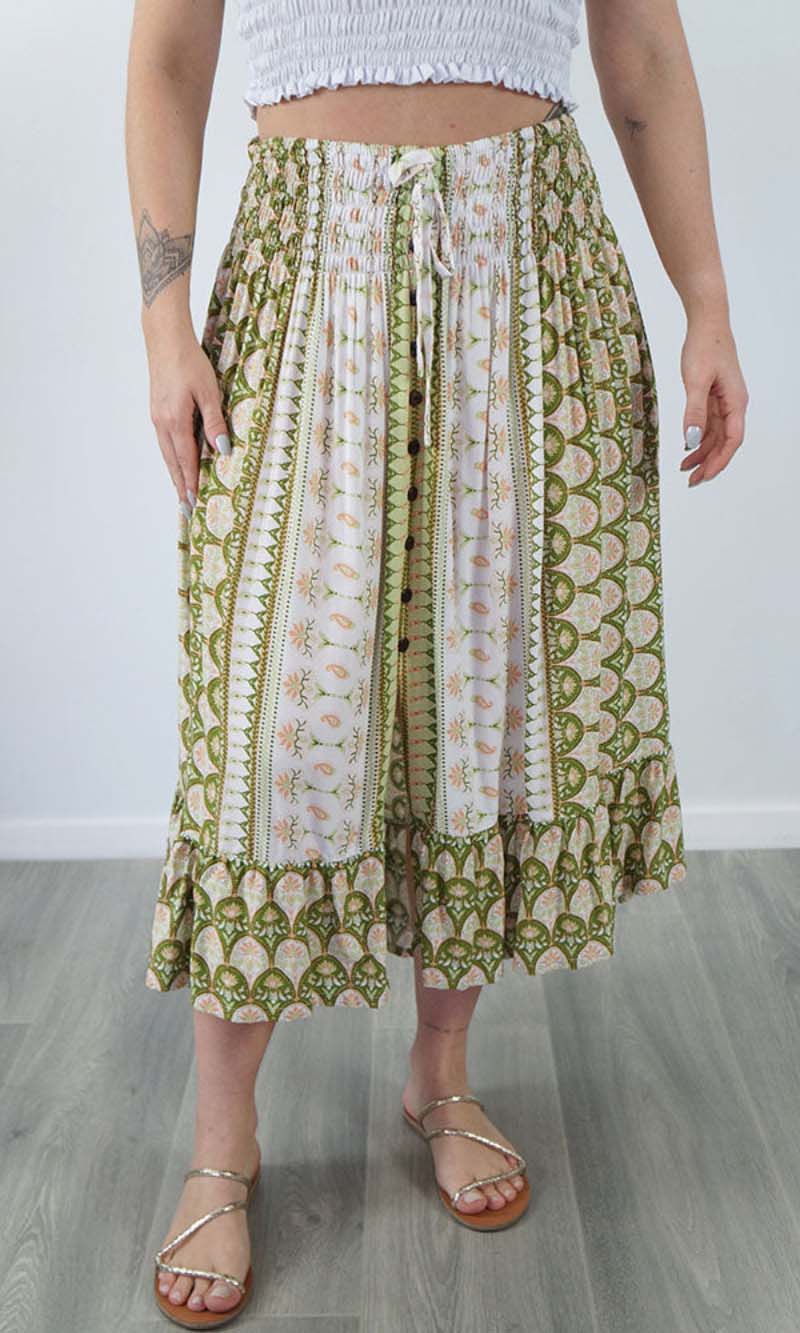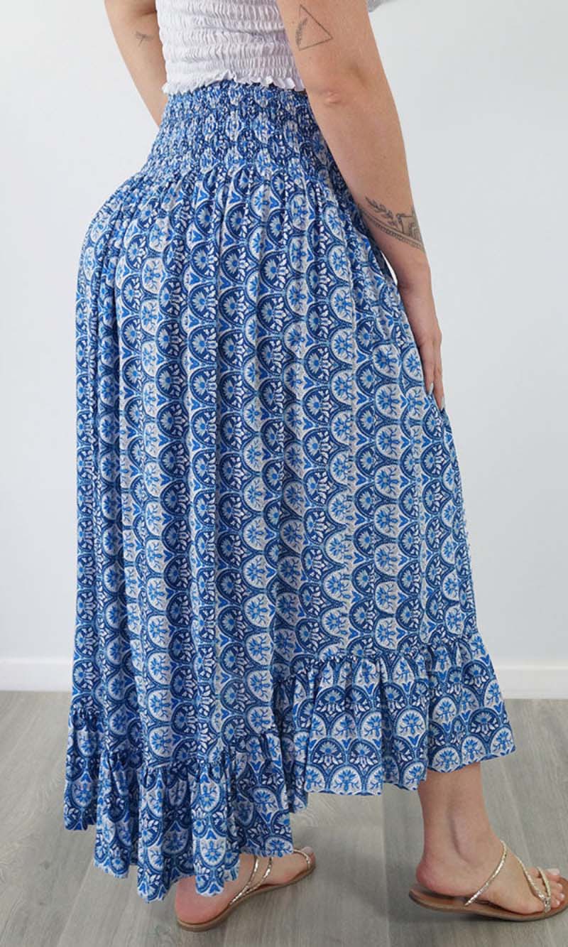 The Tangelo Skirt is fun and flirty. This "hi-low" skirt is the perfect length that can worn at as a casual or dressed up. The elastic smock waist ensures a comfortable fit for a wide range of sizes. Free size fits 8-16.