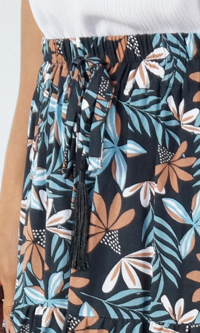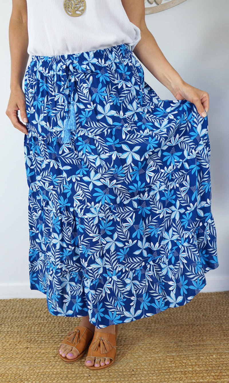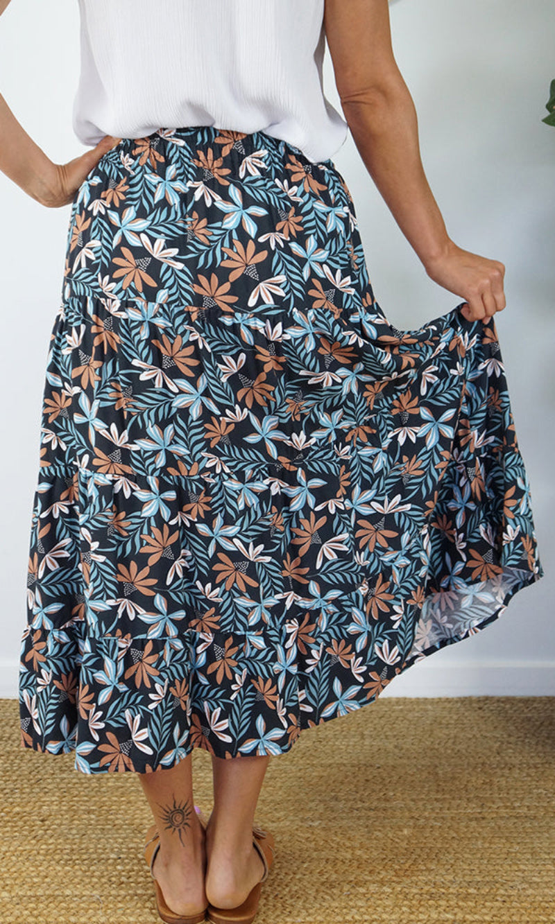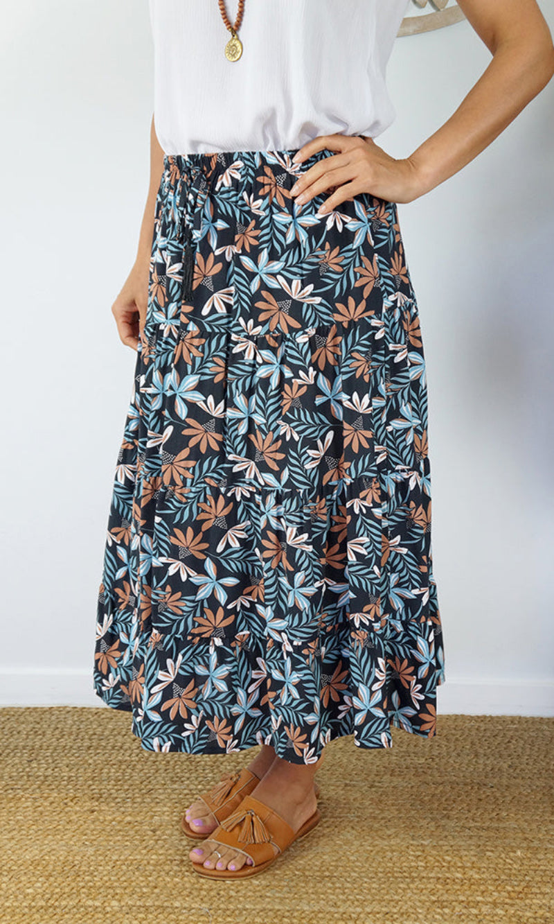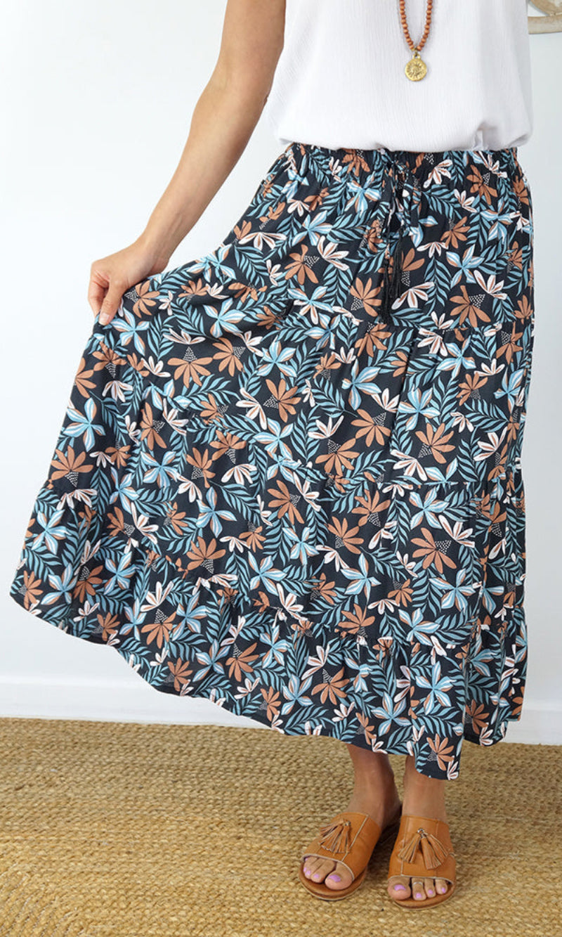 Feel fresh and fabulous in this floral panel design print. Features an elastic waist, made from cool soft rayon fabric and a one size to fit 10-16. Its a must have for this summer!