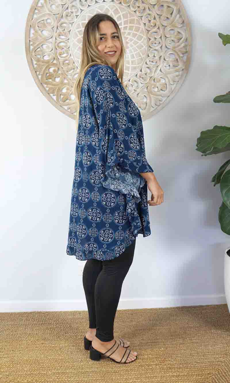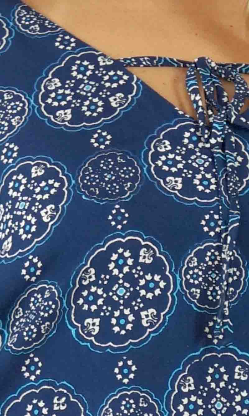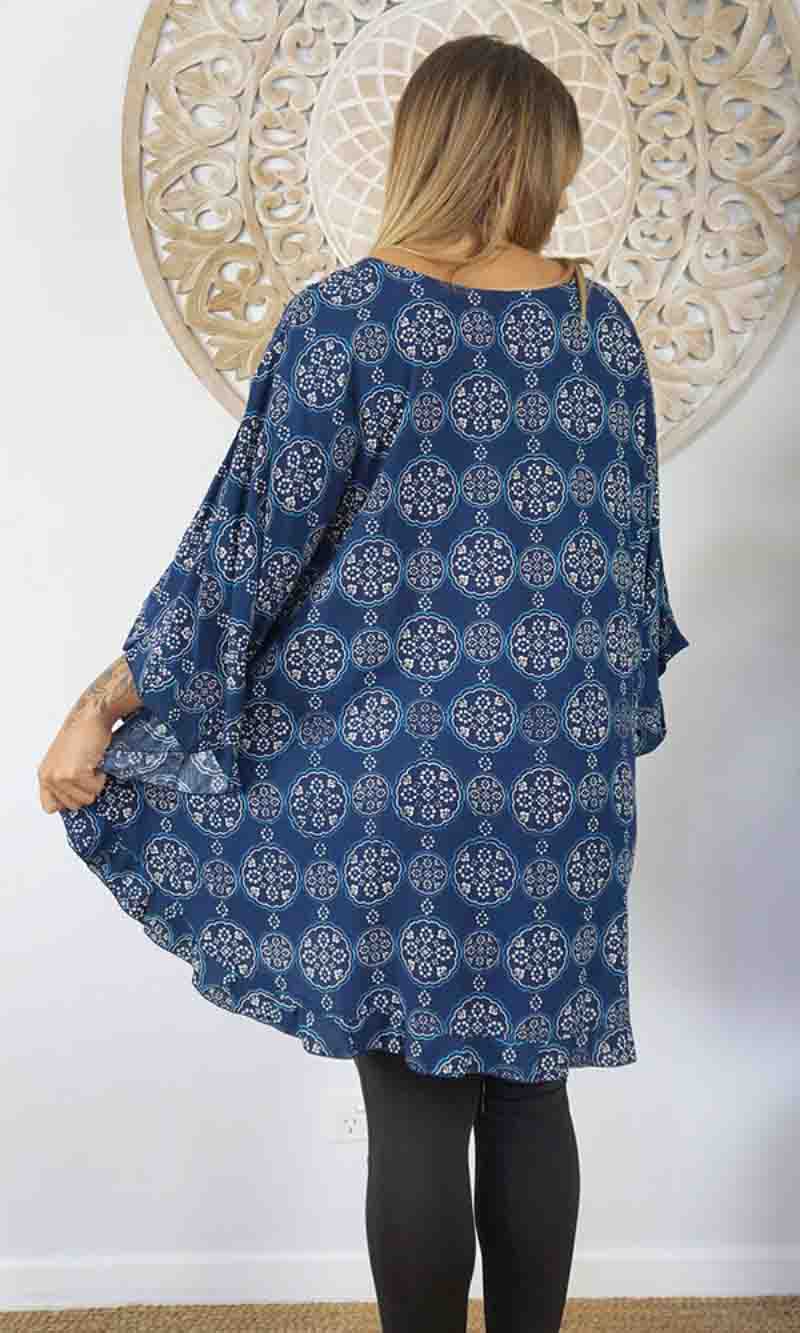 Wear it as a top, a dress, or a tunic over bathers, this product is a complete outfit. A cute tie on the neck line compliments the free flowing figure, while batwing style sleeves give your arms space to move freely.
