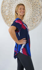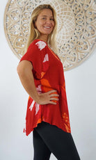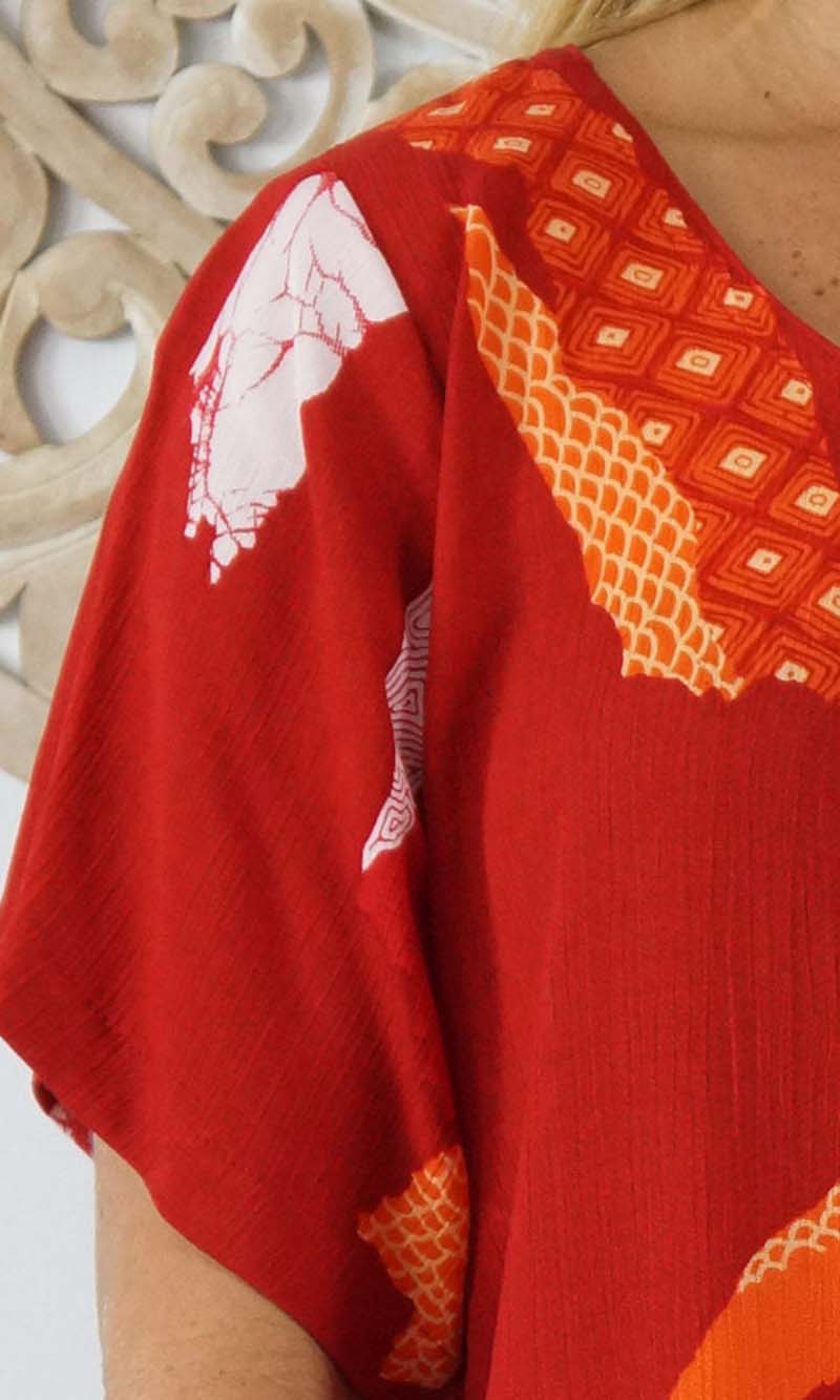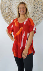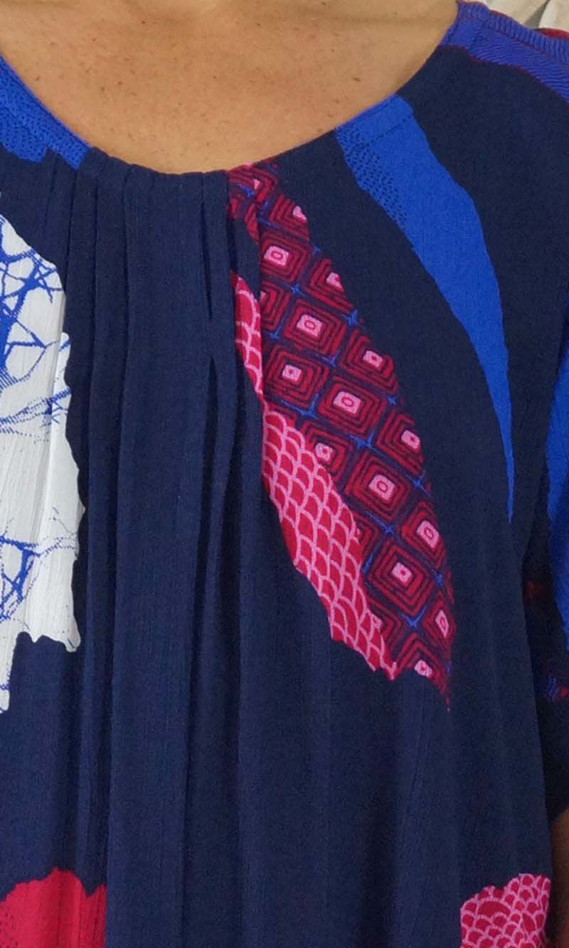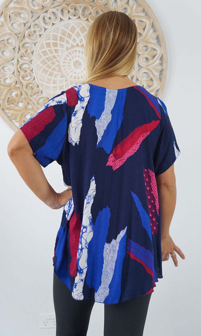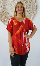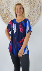 A flowy top with sleeves made from a cool crinkle rayon for those hot summer days. Sizes available 10-16, 18-22