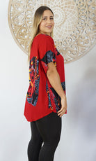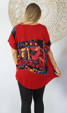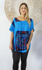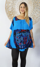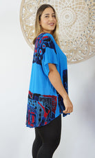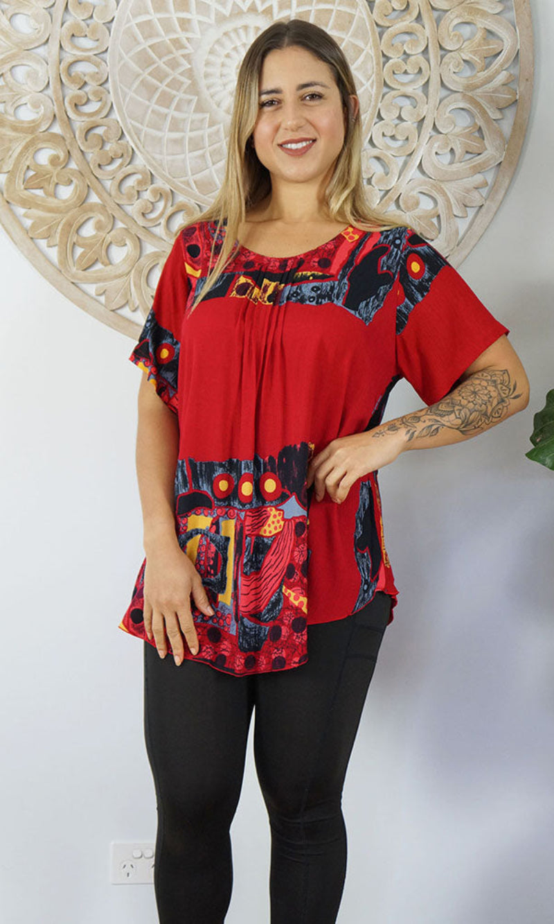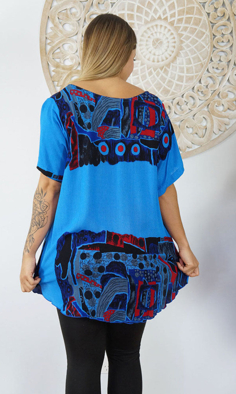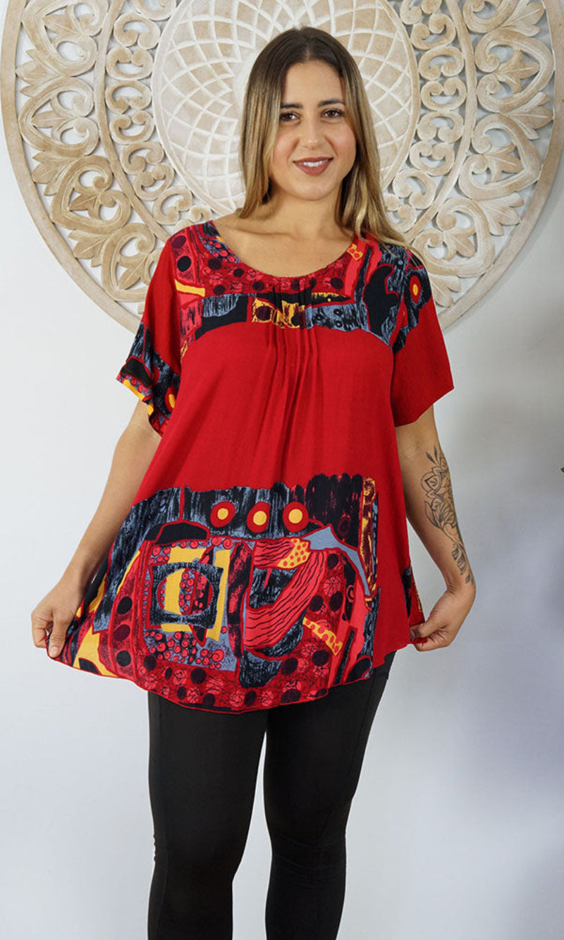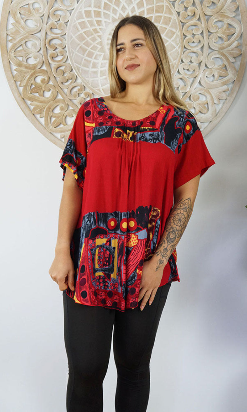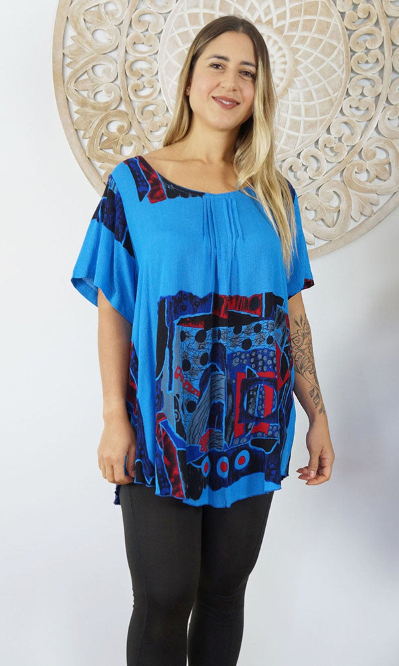 A flowy top with sleeves made from a cool crinkle rayon for those hot summer days. Sizes available 10-16, 18-22