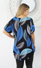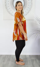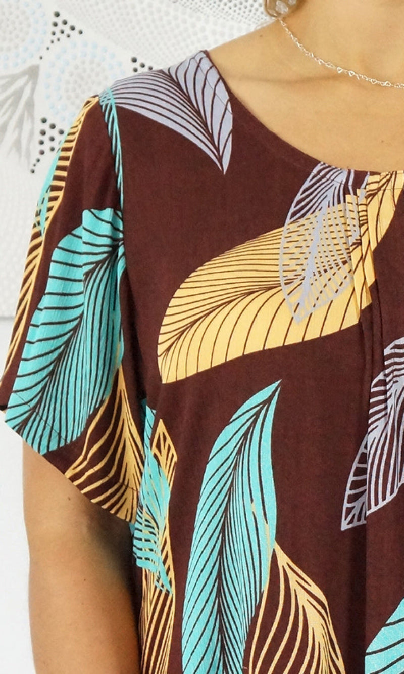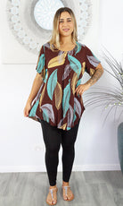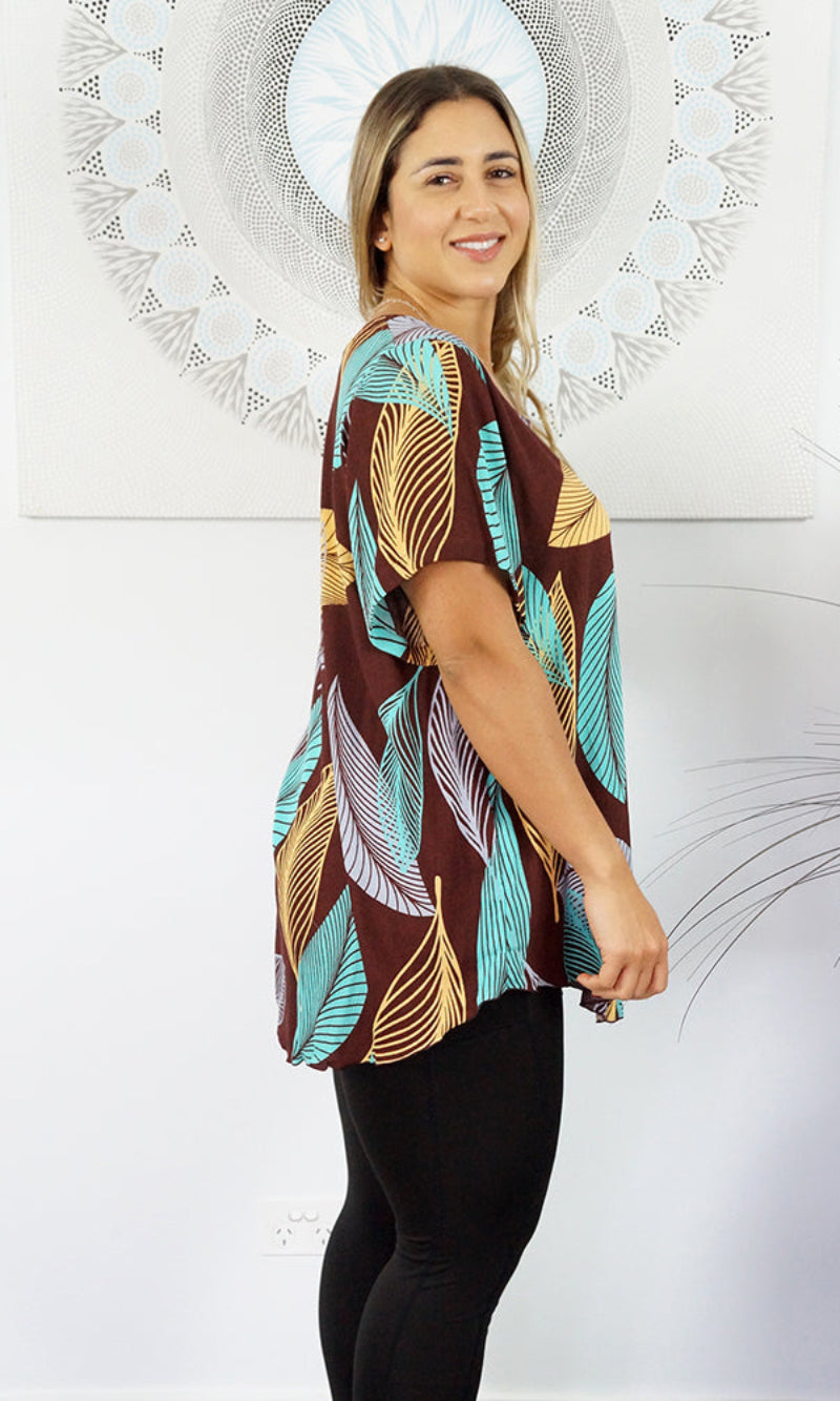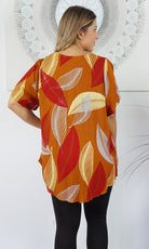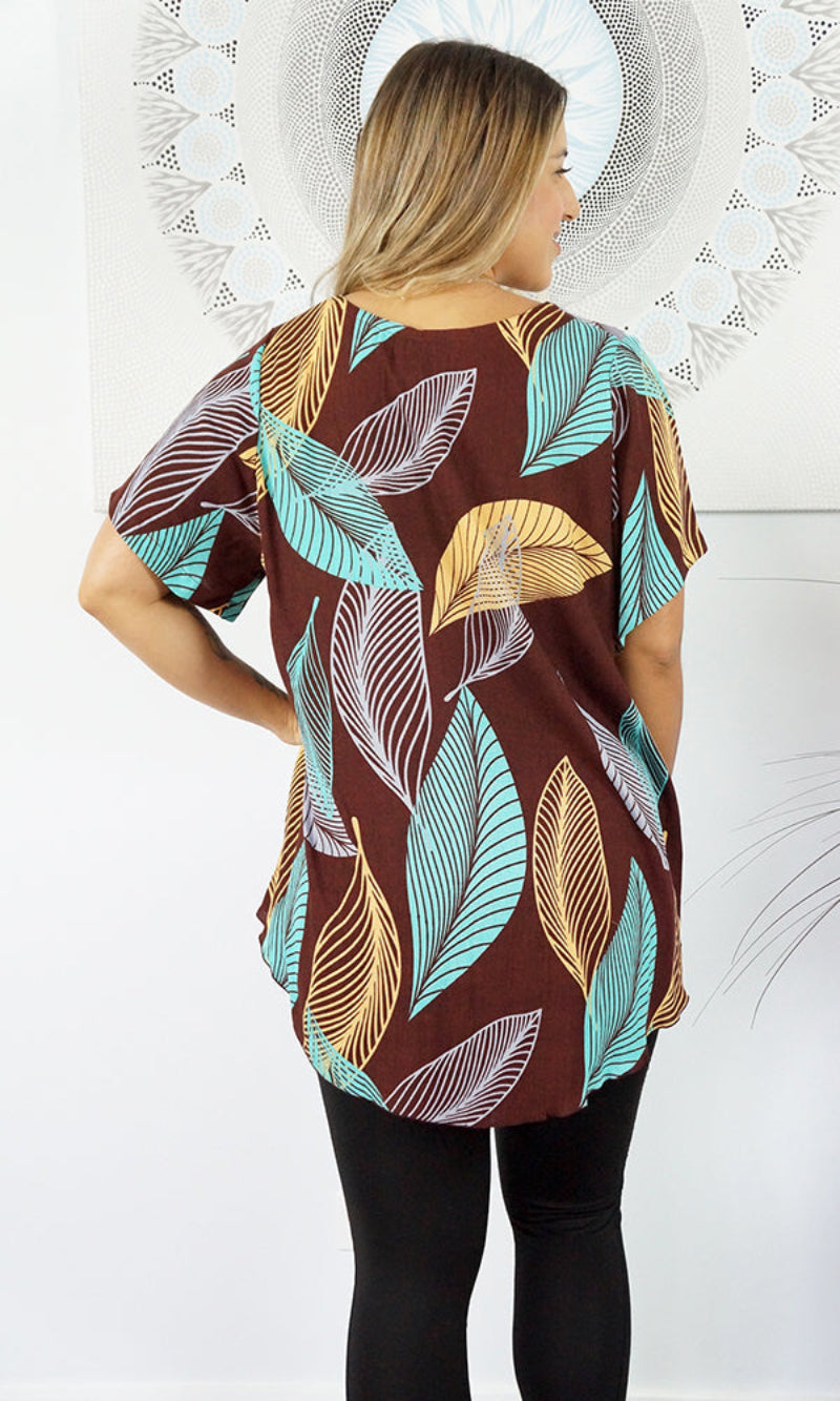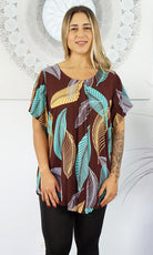 A flowy top with sleeves made from a cool crinkle rayon for those hot summer days. Sizes available 10-16, 18-22