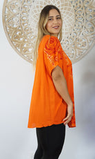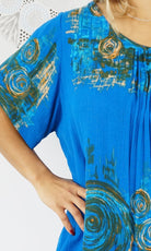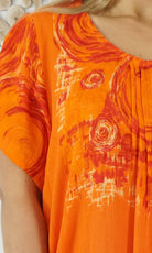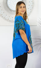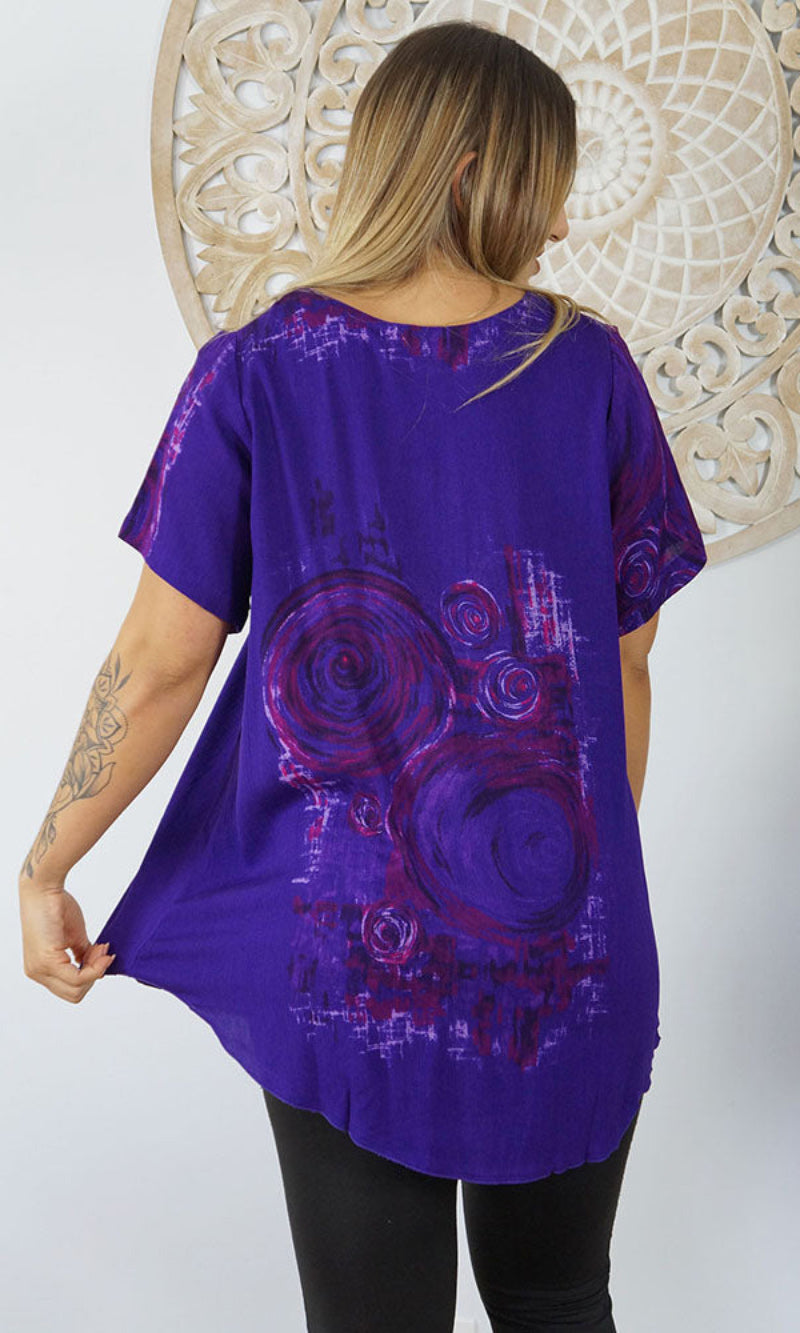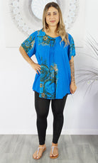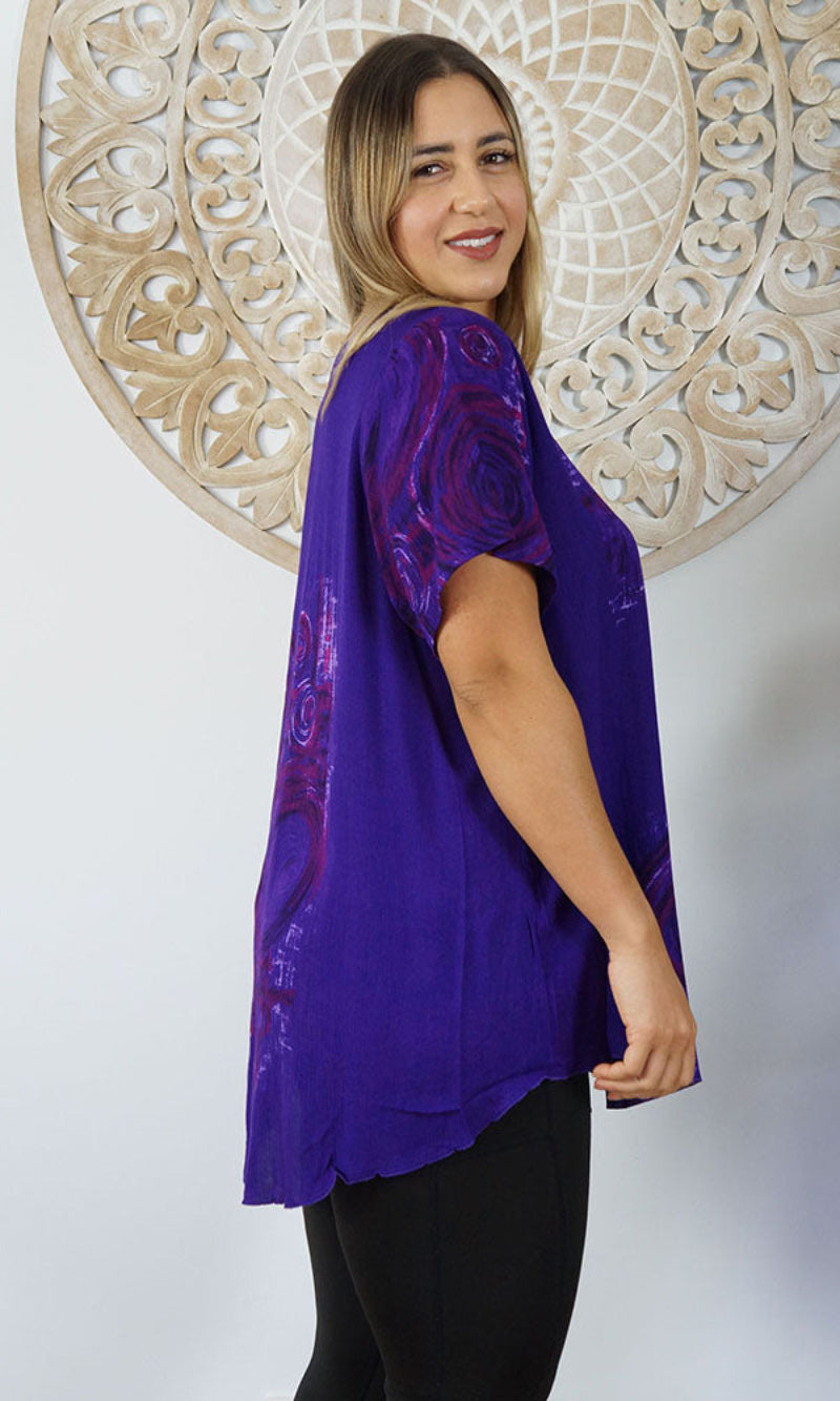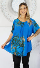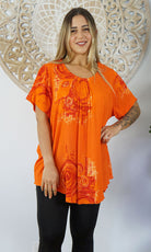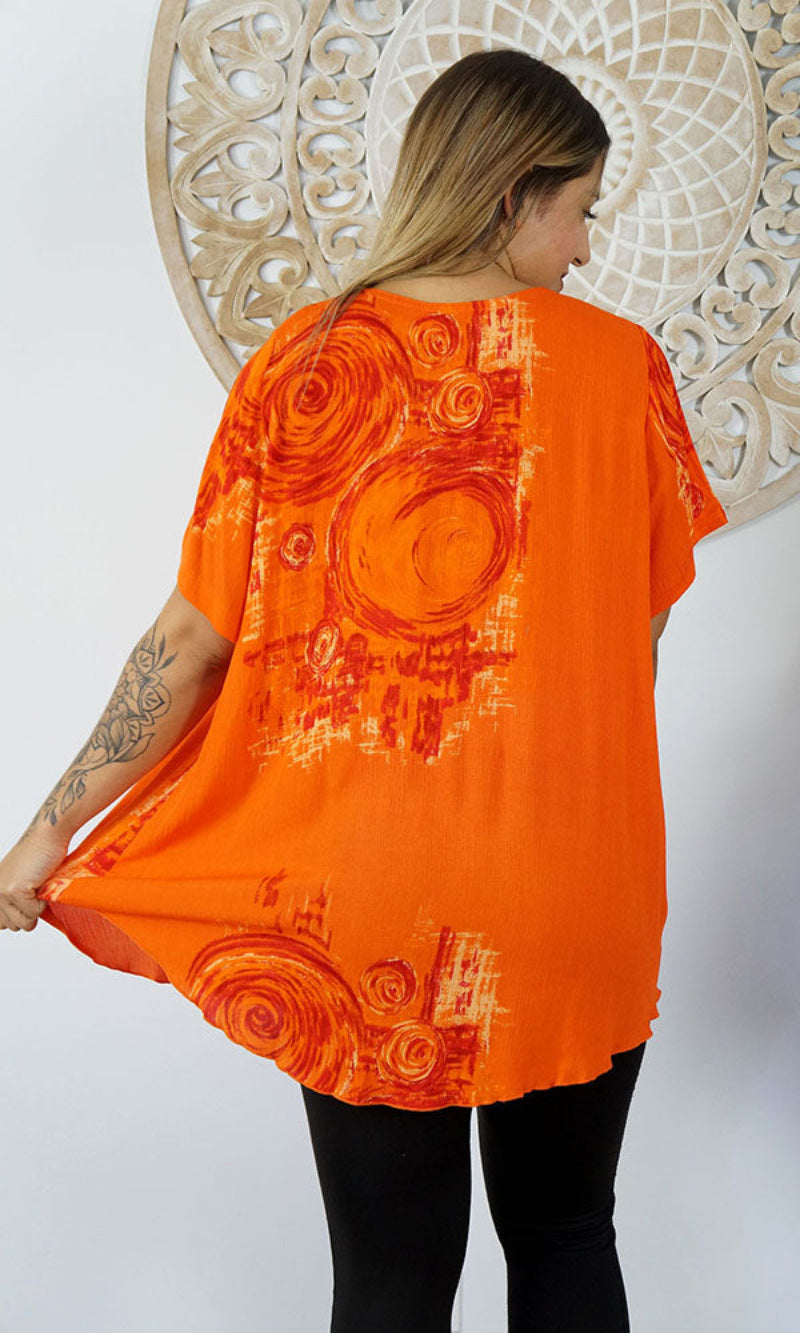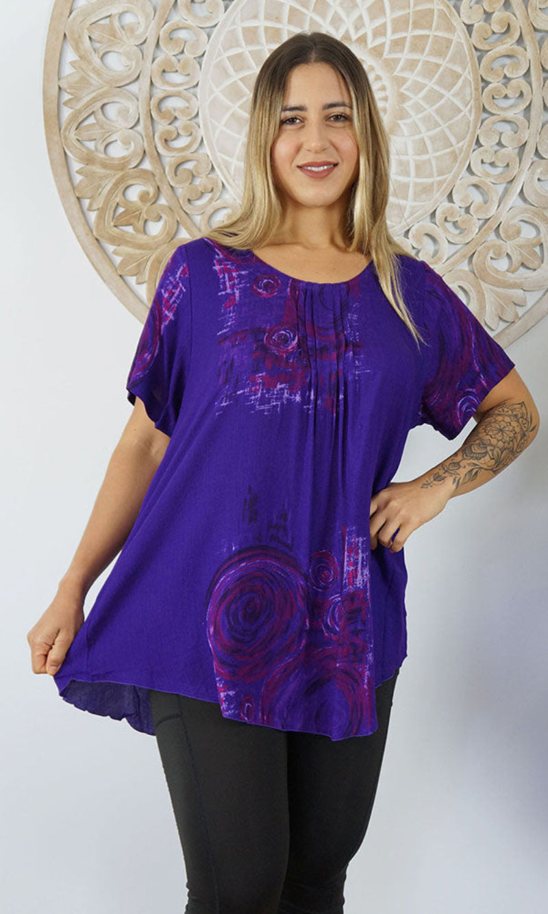 A flowy top with sleeves made from a cool crinkle rayon for those hot summer days. Sizes available 10-16, 18-22