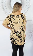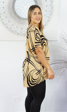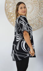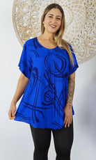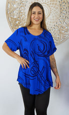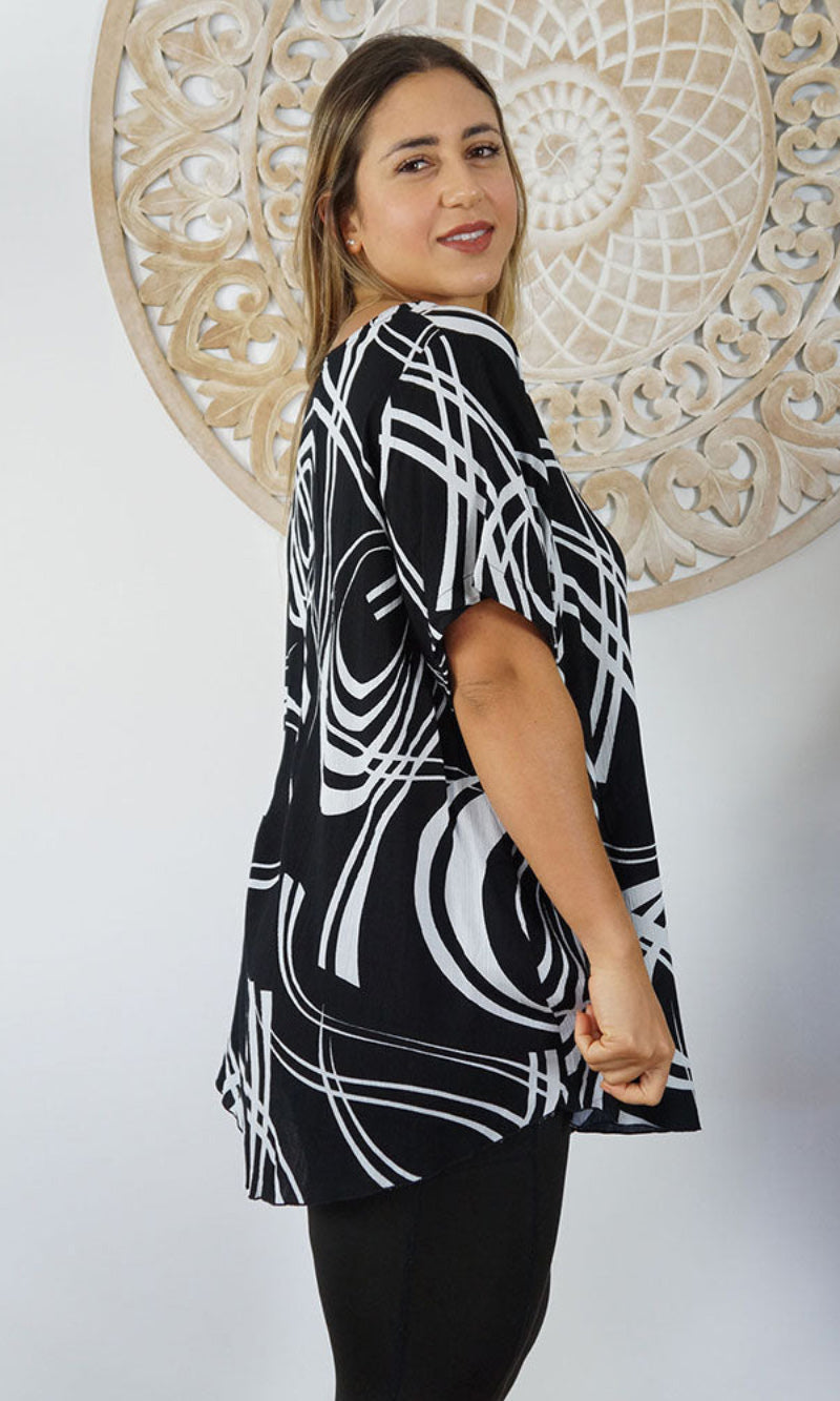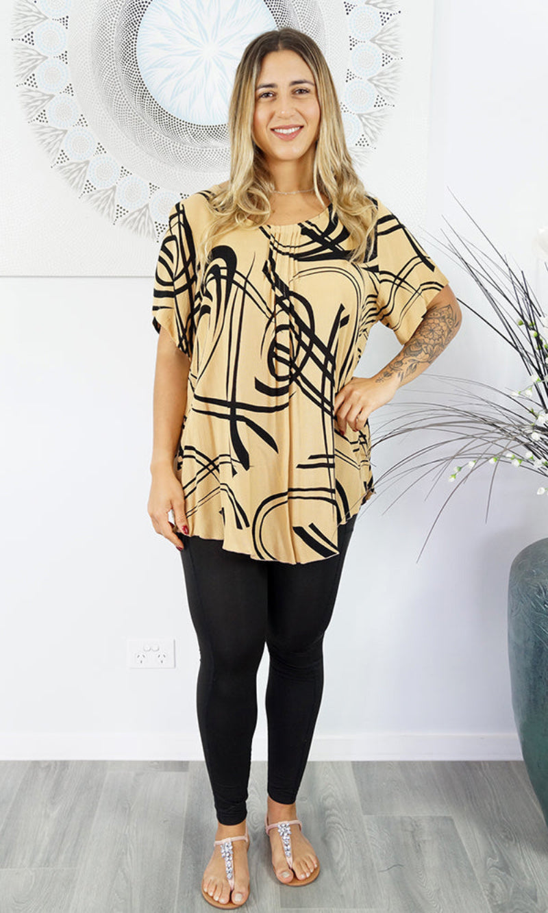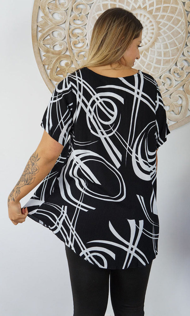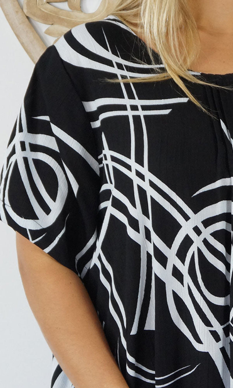 A flowy top with sleeves made from a cool crinkle rayon for those hot summer days. Sizes available 10-16, 18-22