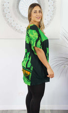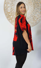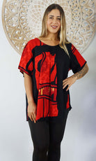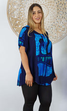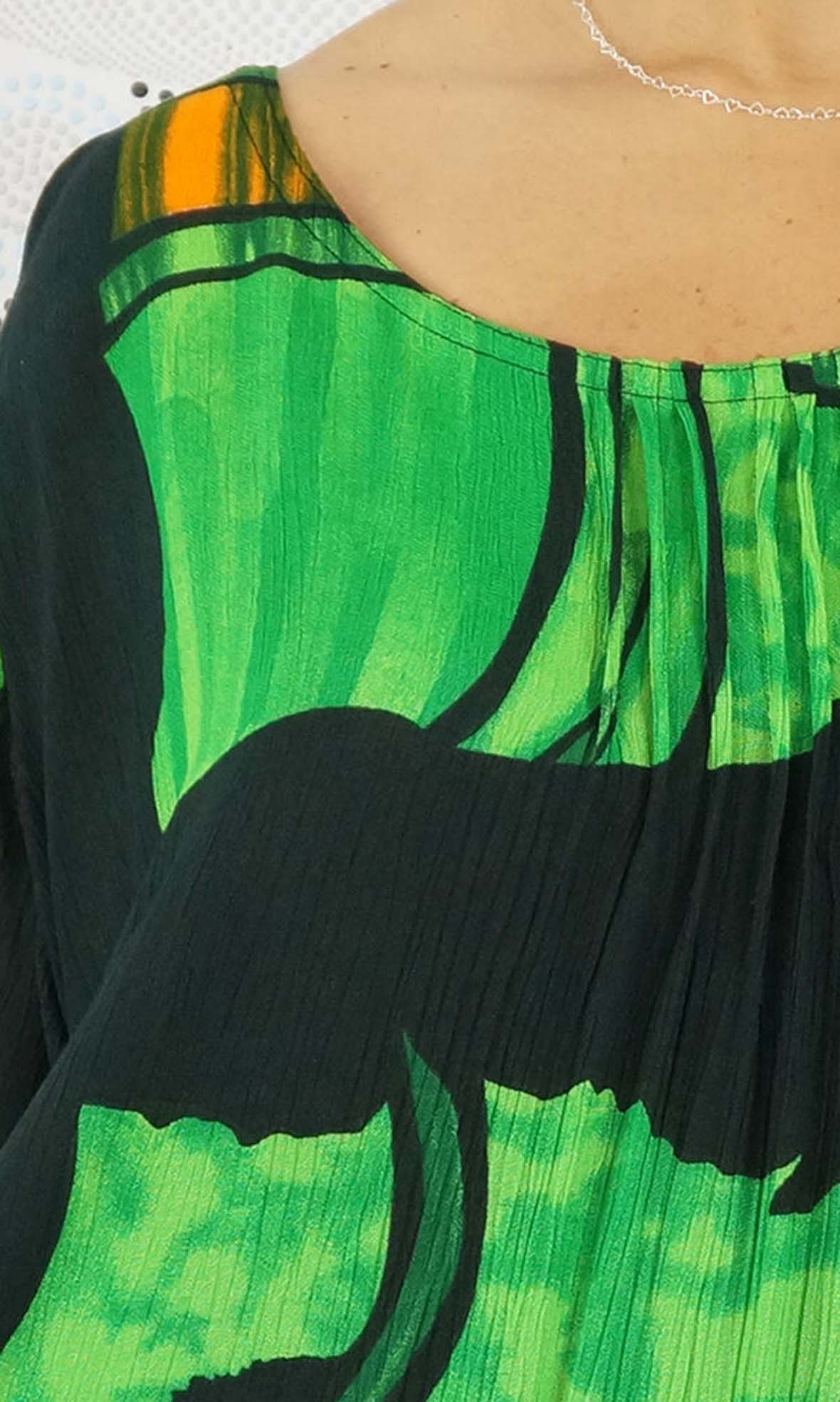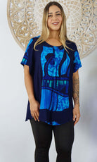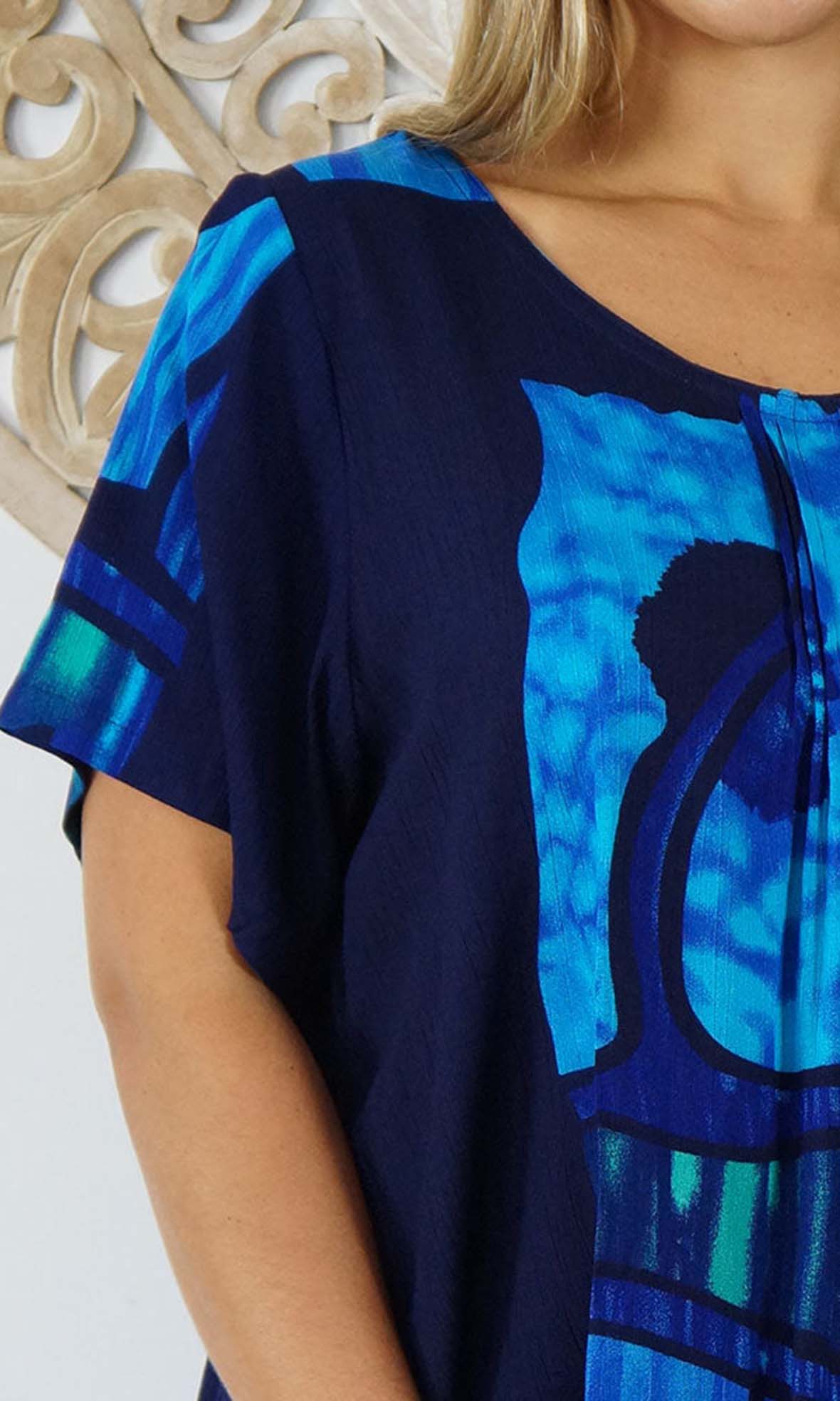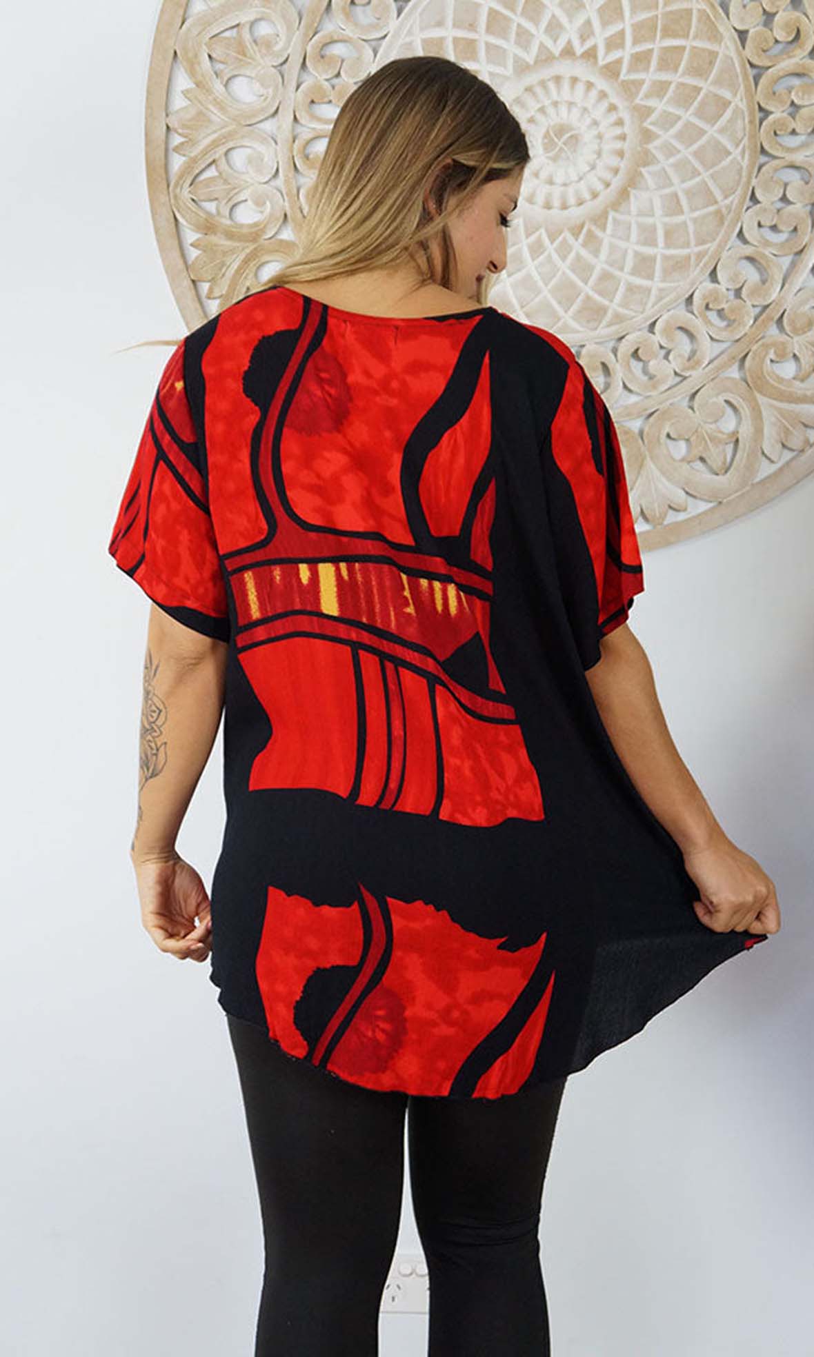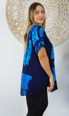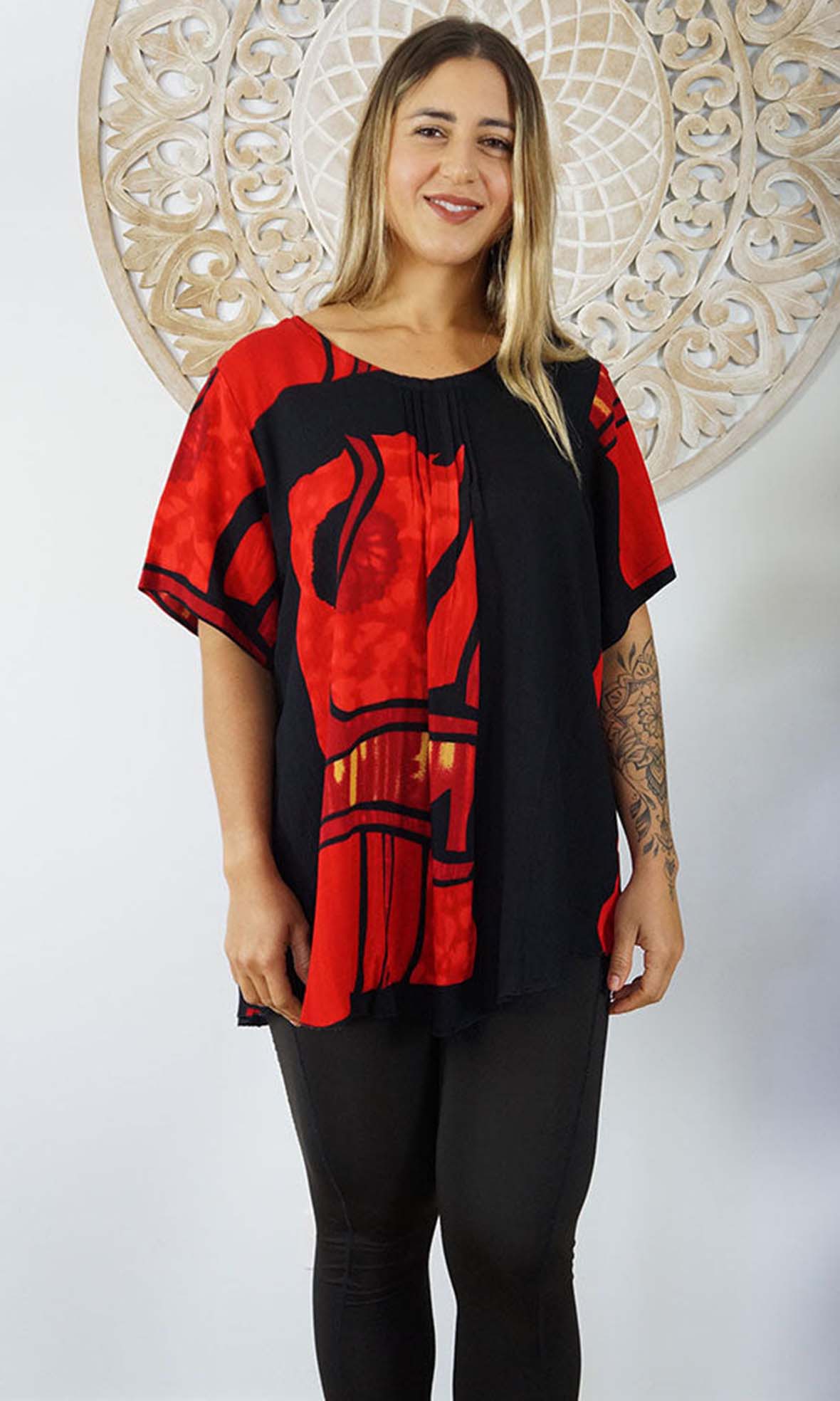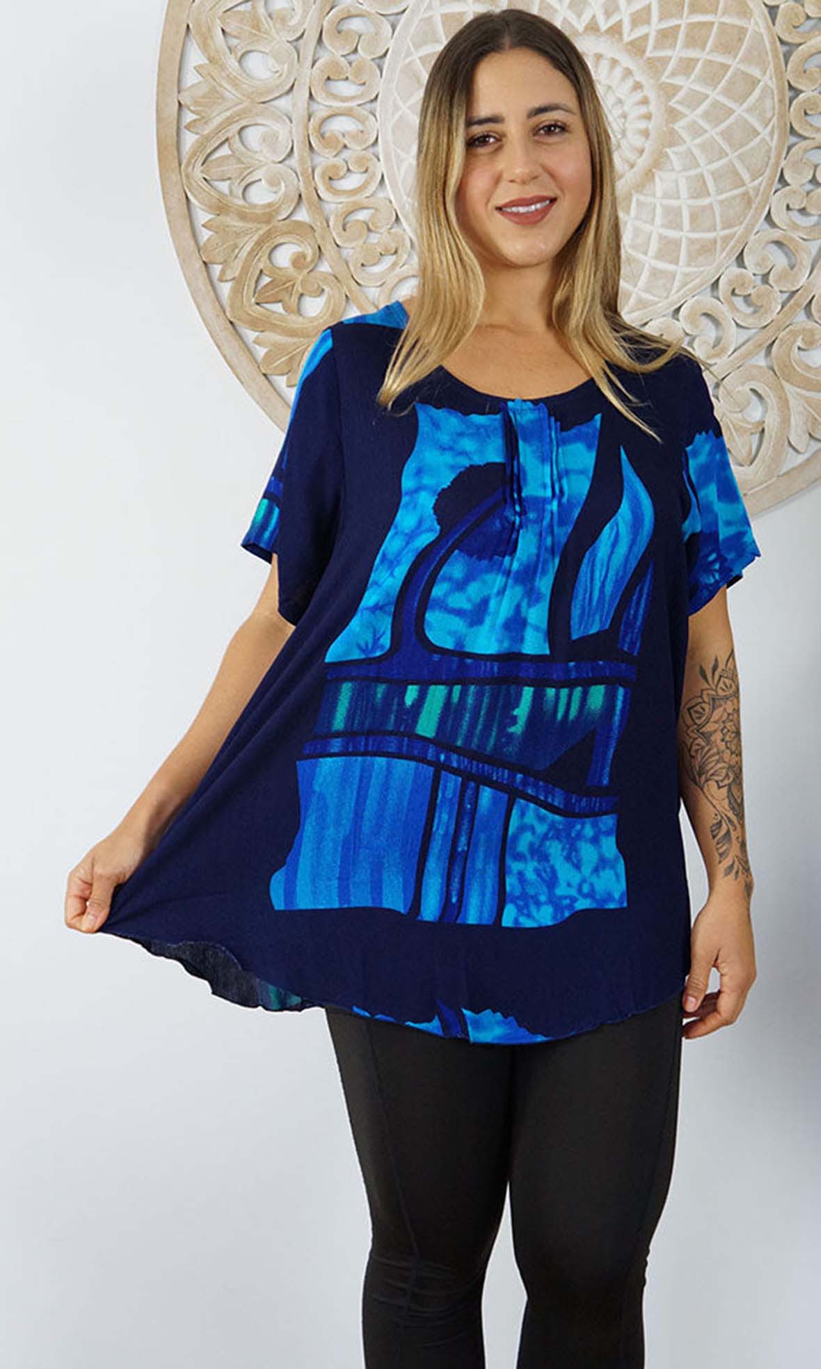 A flowy top with sleeves made from a cool crinkle rayon for those hot summer days. Sizes available 10-16, 18-22