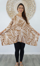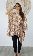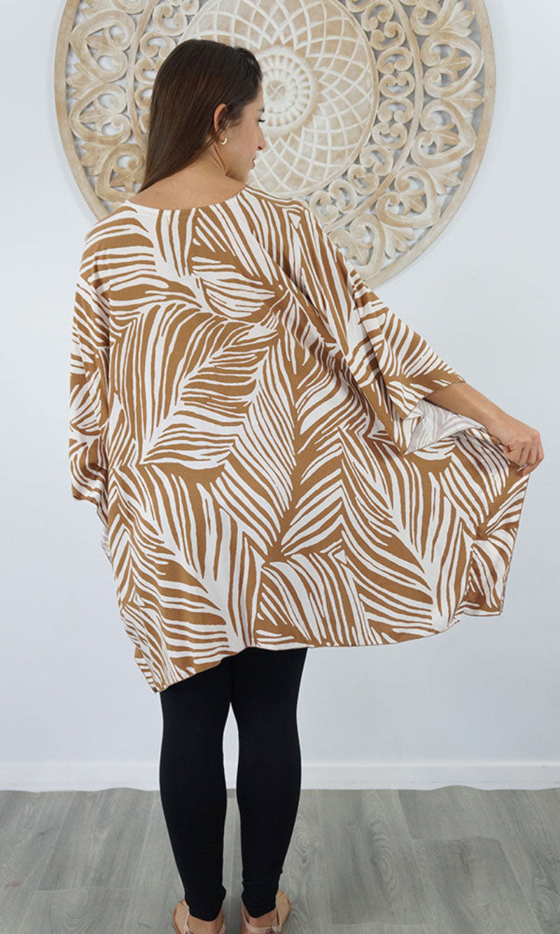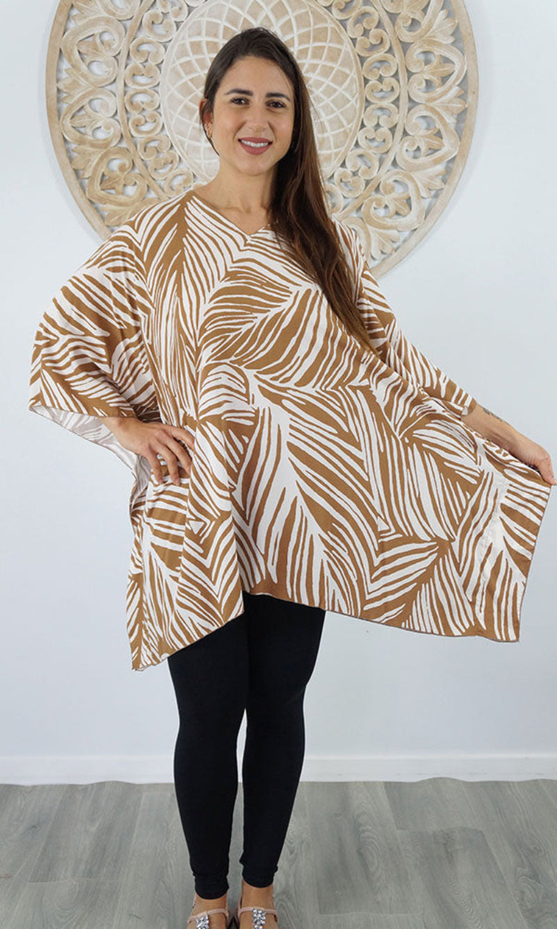 Can be worn over the swimmers as a kaftan, or over pants as a top. Free and flowing comfortable.