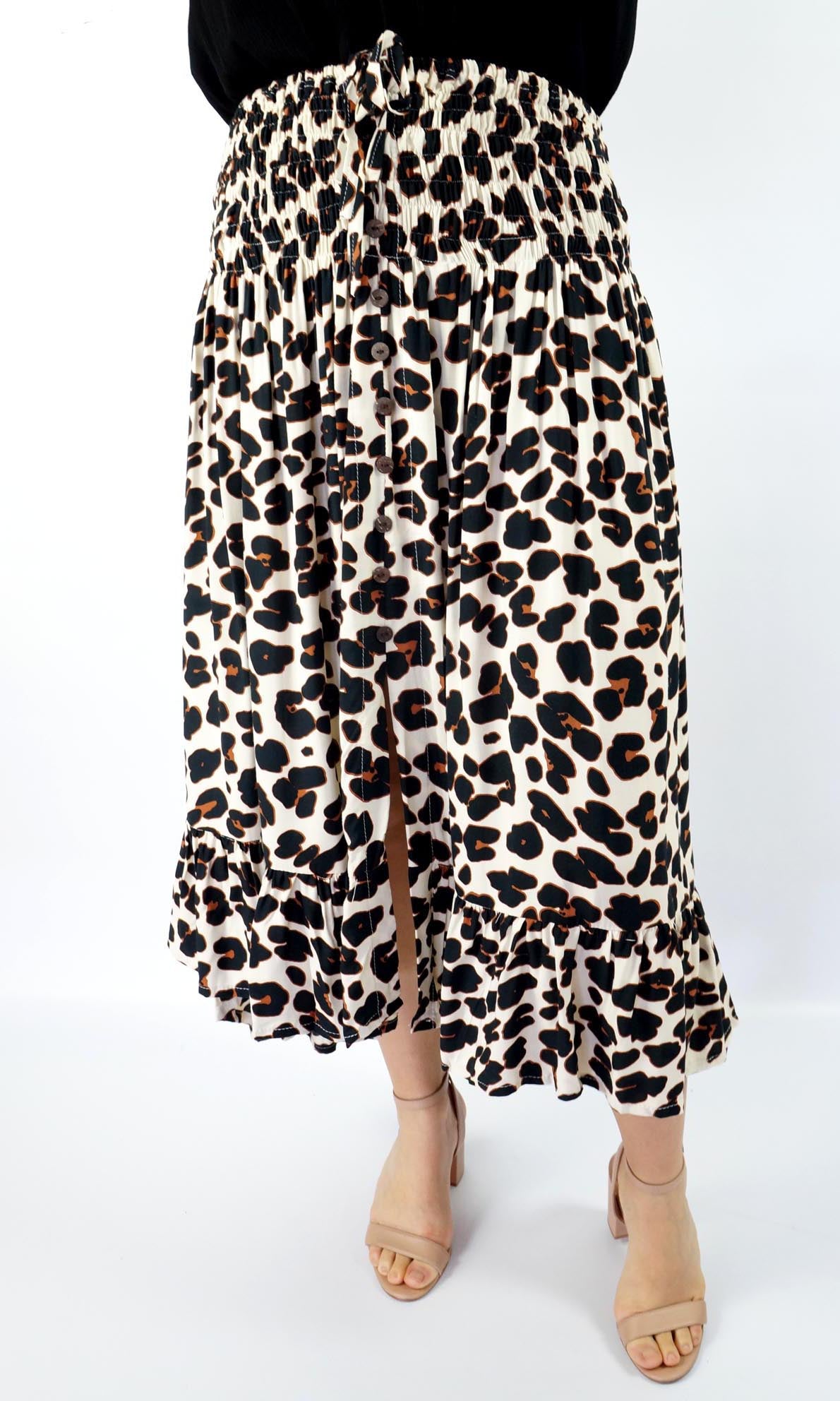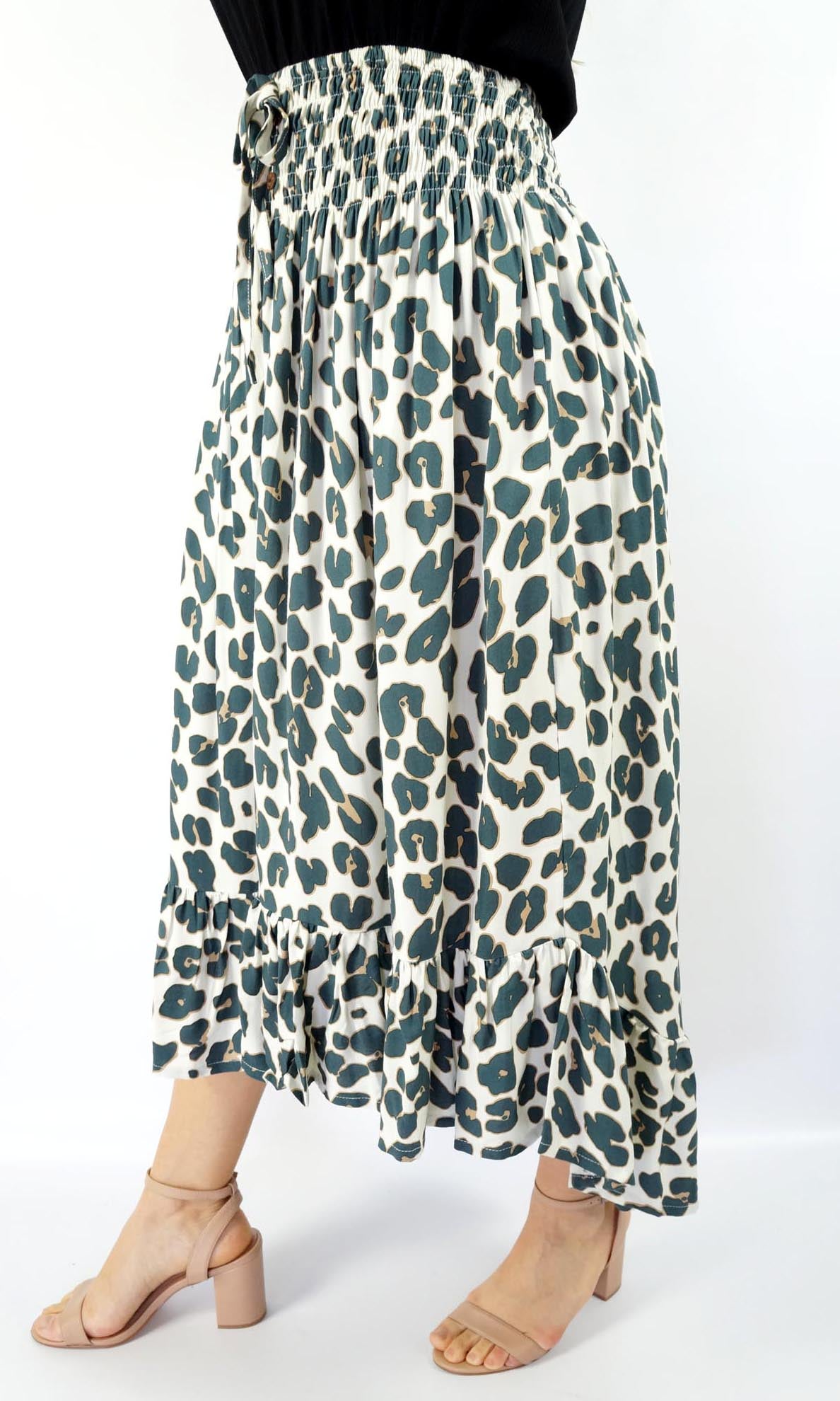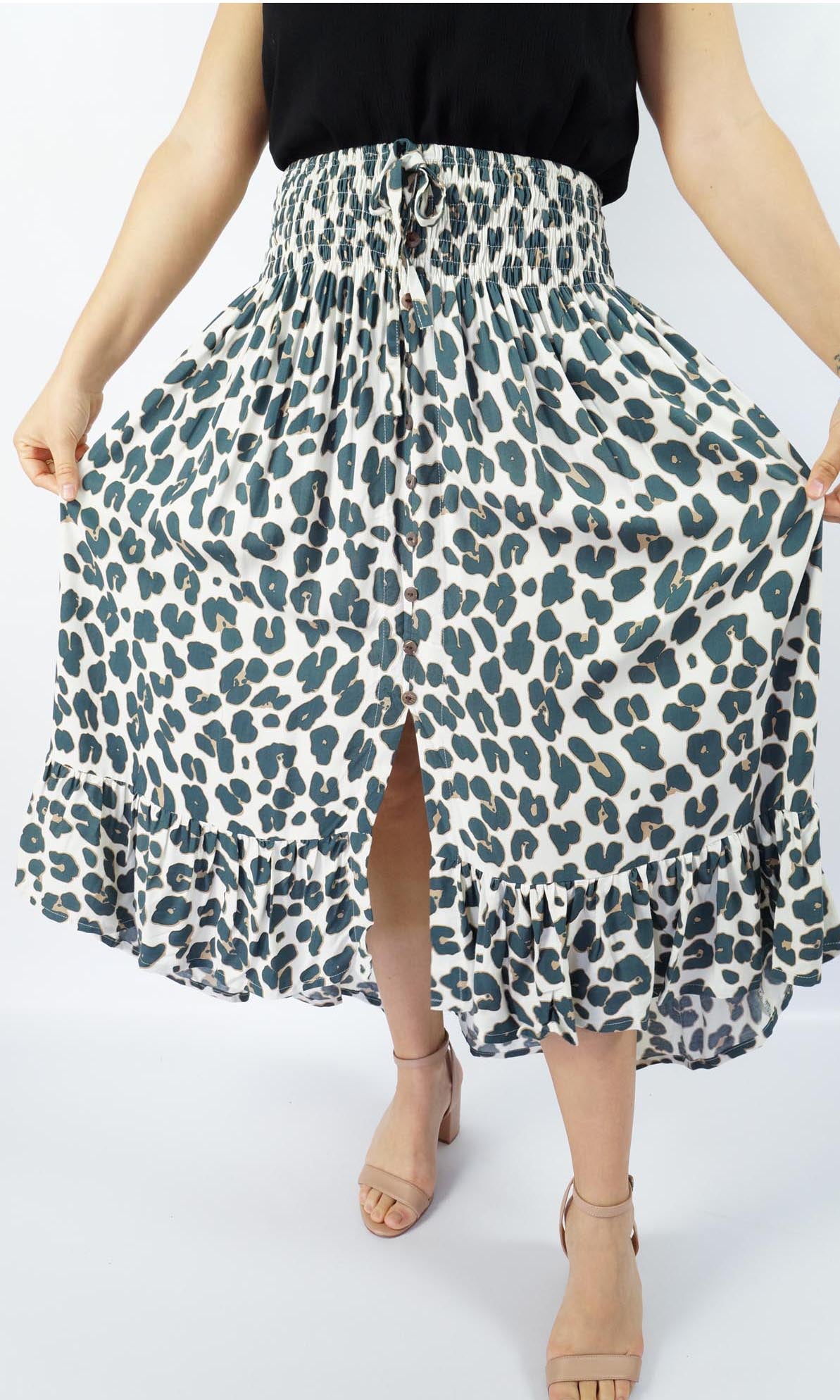 The Tangelo Skirt is fun and flirty. This "hi-low" skirt is the perfect length that can worn at as a casual or dressed up. The elastic smock waist ensures a comfortable fit for a wide range of sizes. Free size fits 8-16.