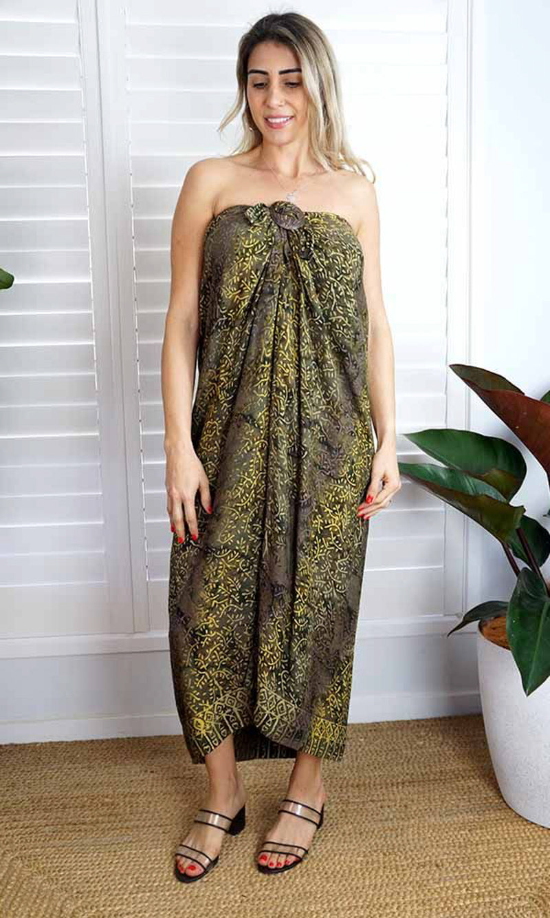 This easy to wear Tube sarong is a great gift for those who may not have the patience to tie sarongs up in the normal way. Features include elastic across the back to make a comfortable fit and complimentary coconut sarong buckle. Made from 100% lightweight rayon fabric. Size S/M, L/XL, 2XL