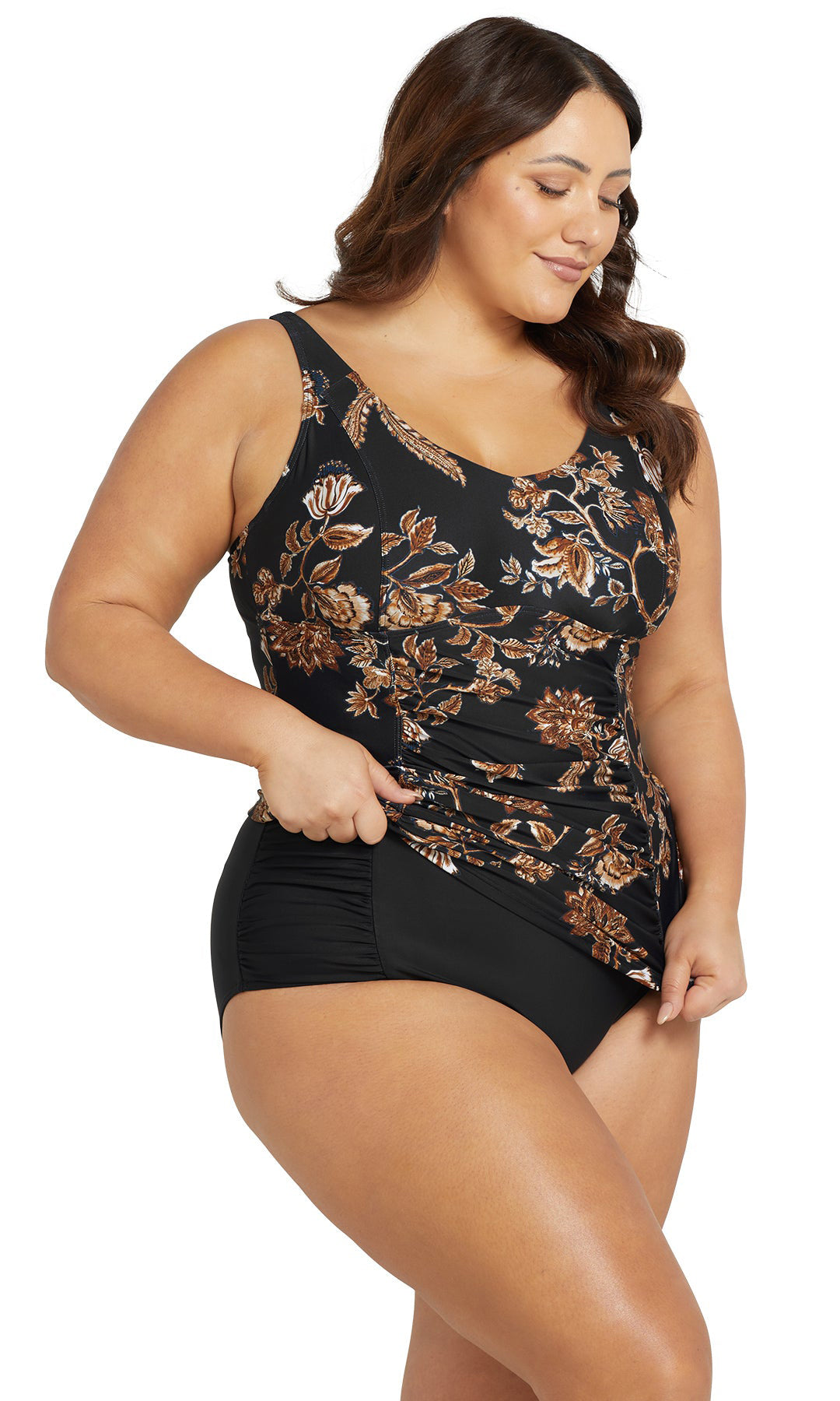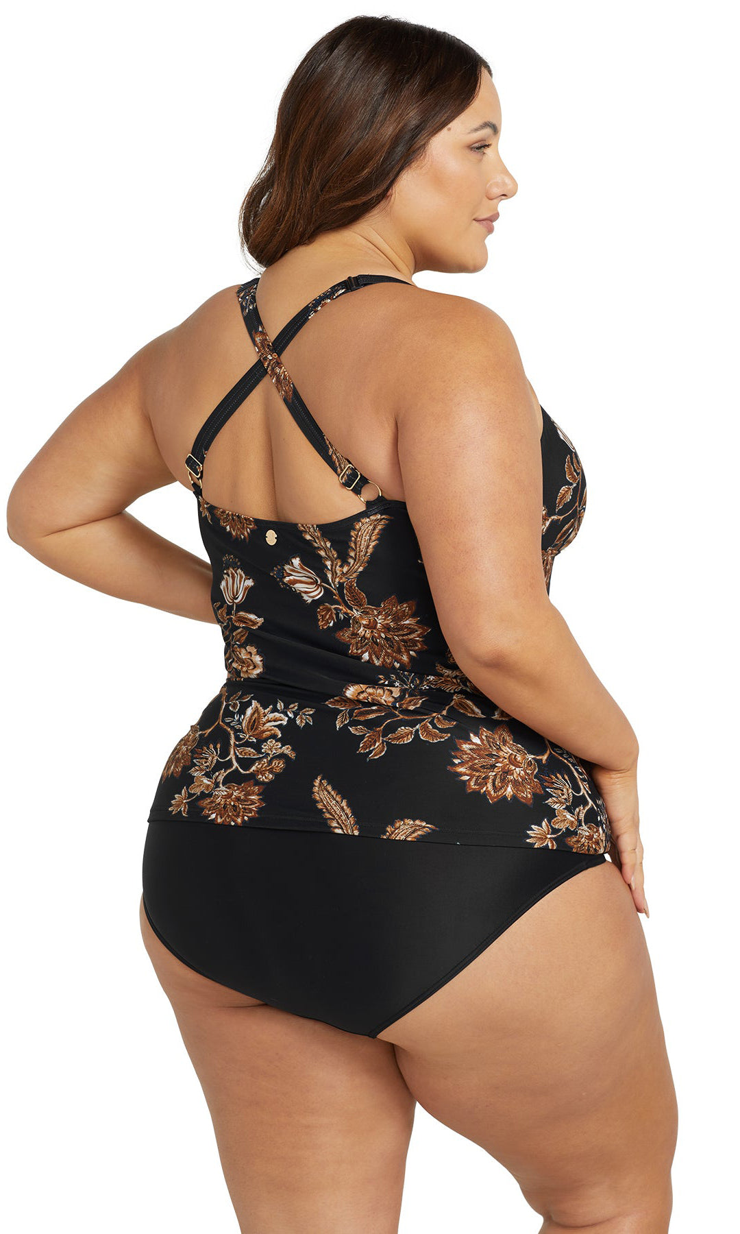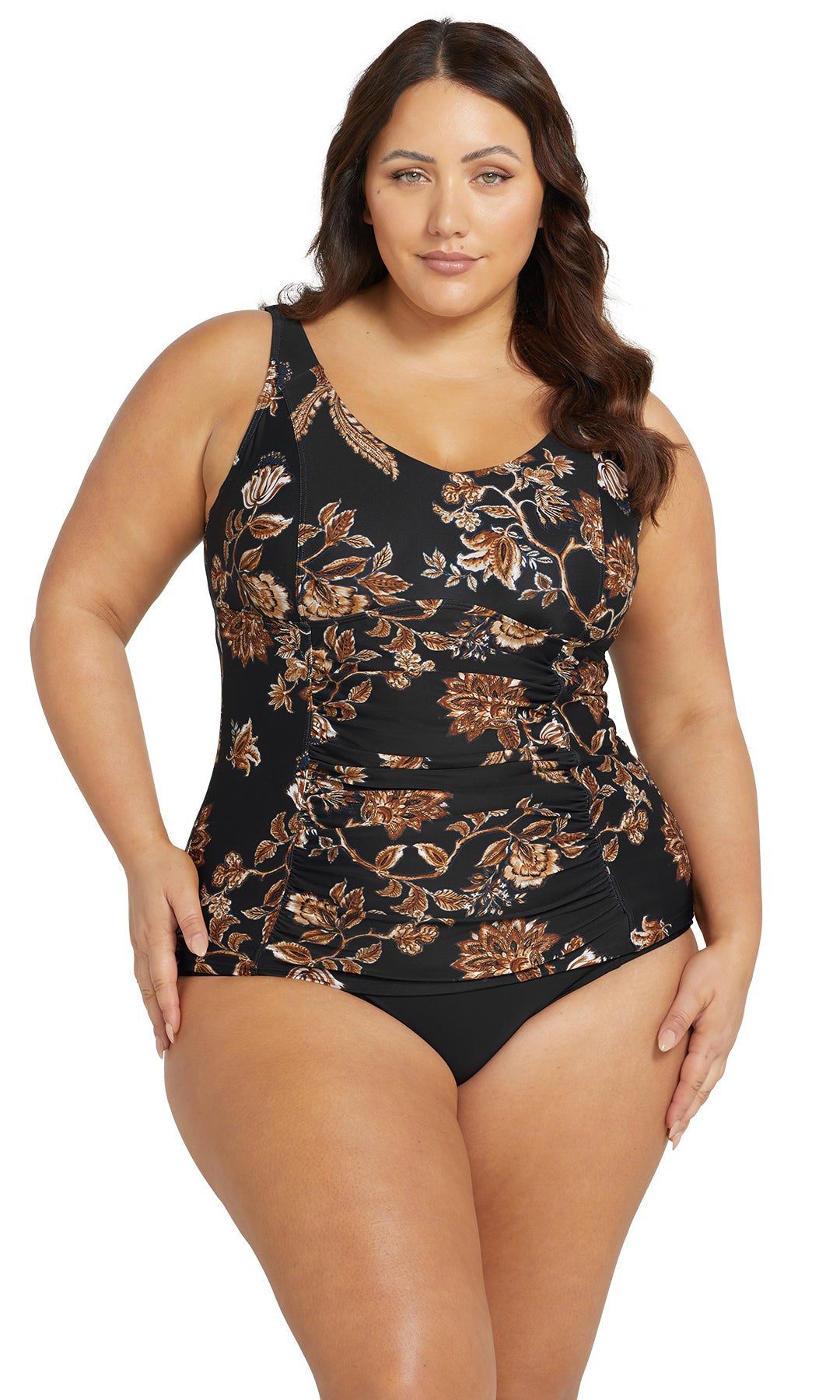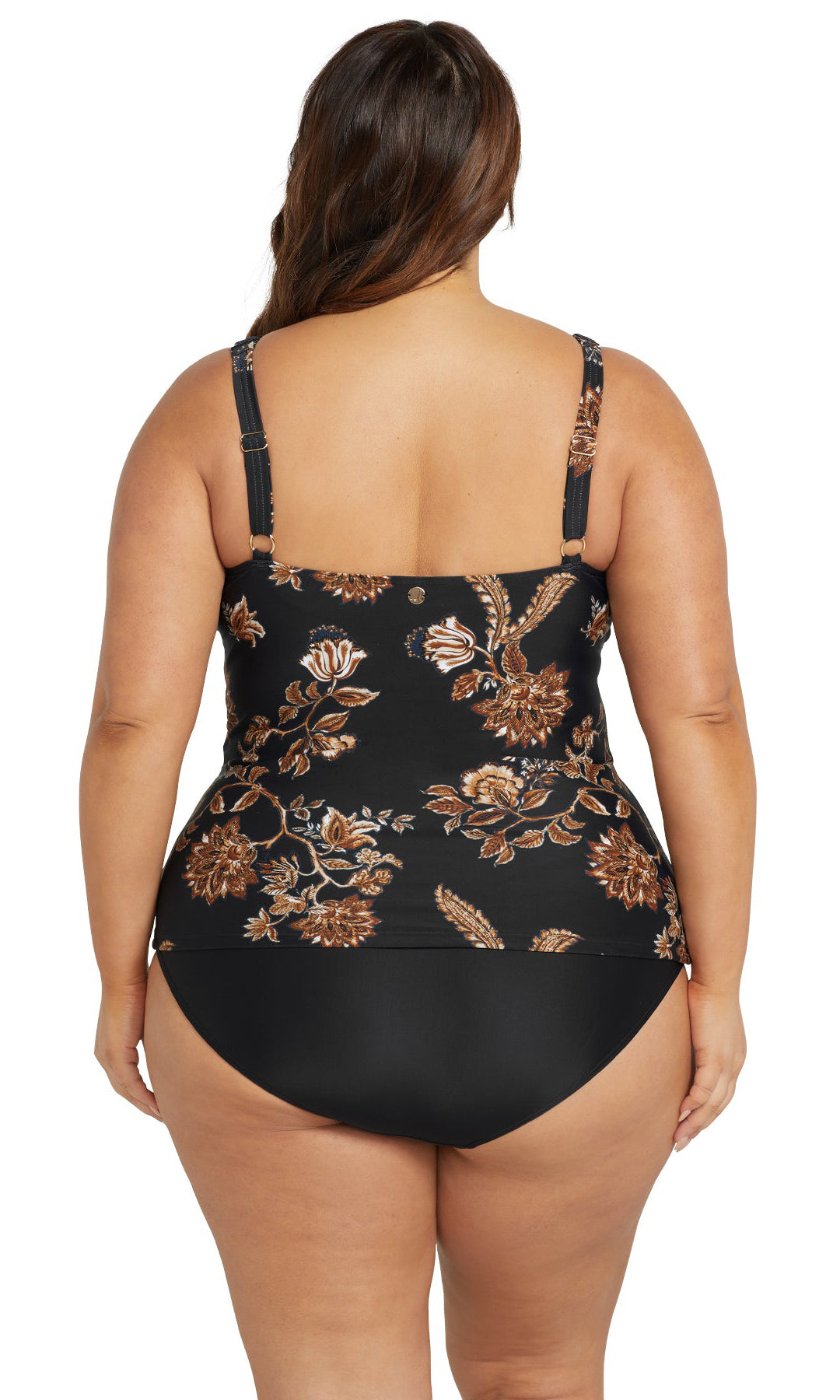 Artesands Fits Your Curves. Raphael is our full support swimsuit style with all the bells and whistles. This curve fit and plus size tankini top has underwire support to fit a E cup to F cup. This swimsuit has an internal bra fitting, and full body 360 degree powermesh for body sculpting confidence. Our curve fit and plus size tankini tops are a long line to avoid the fabric riding up when you're in the water.