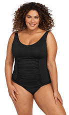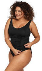 For an extra dose of confidence, Raphael is Artesands full support plus size swimsuit style. Built for an E-F cup, has an internal hidden bra for ultimate bust support, full body power mesh and ruched front for body sculpting your curves.